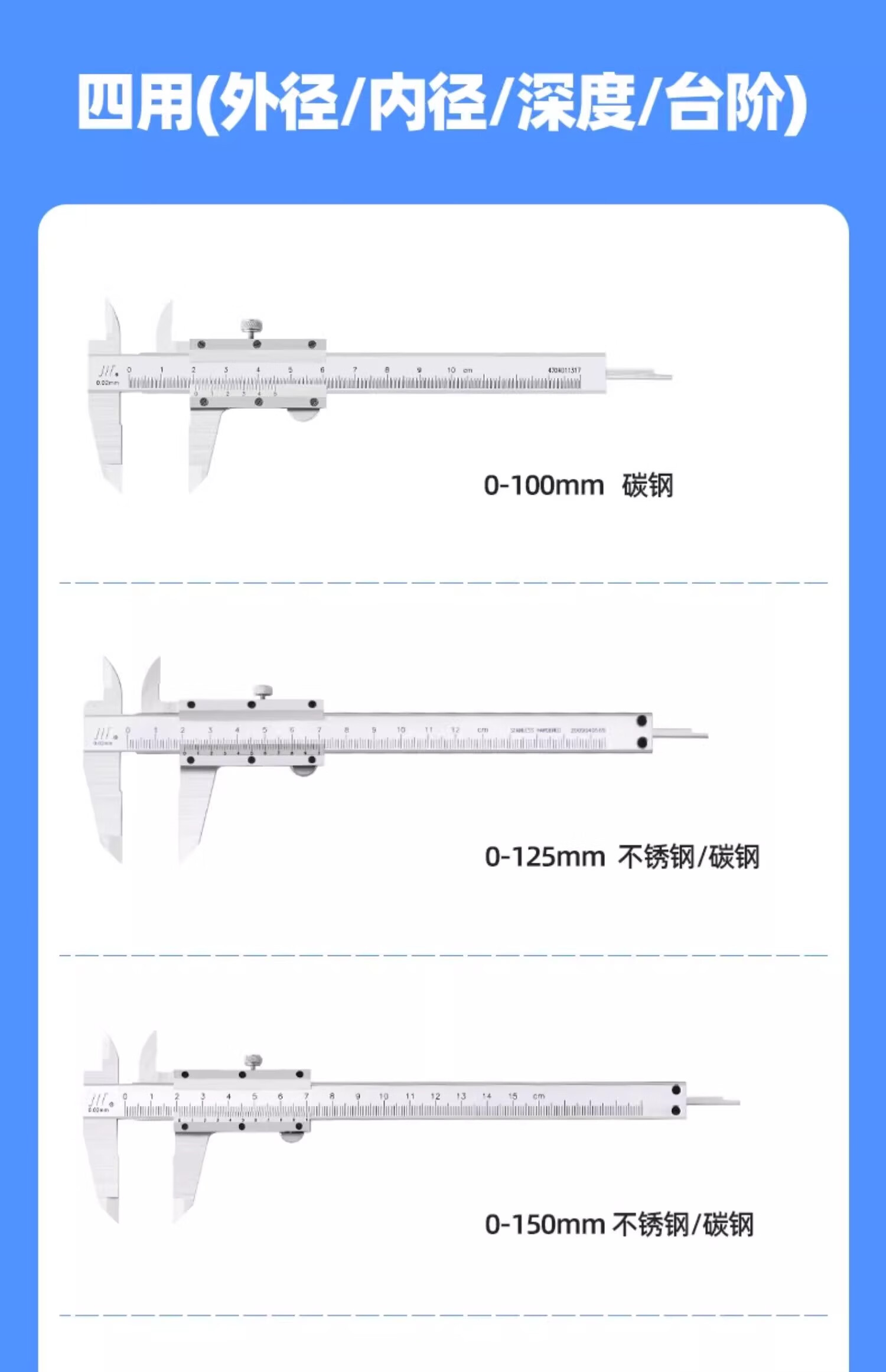 Vernier caliper four-purpose stainless steel 150*0.02mm stainless steel caliper high-precision industrial grade mechanical caliper