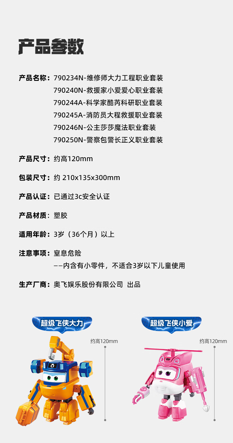 奥迪双钻(AULDEY)超级飞侠变形机器人警察包警长正义套装过家家女孩玩具生日礼物