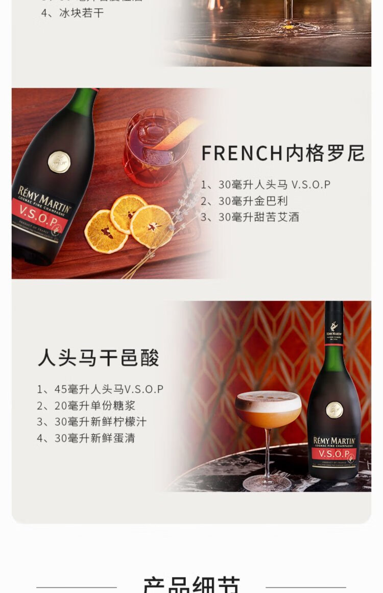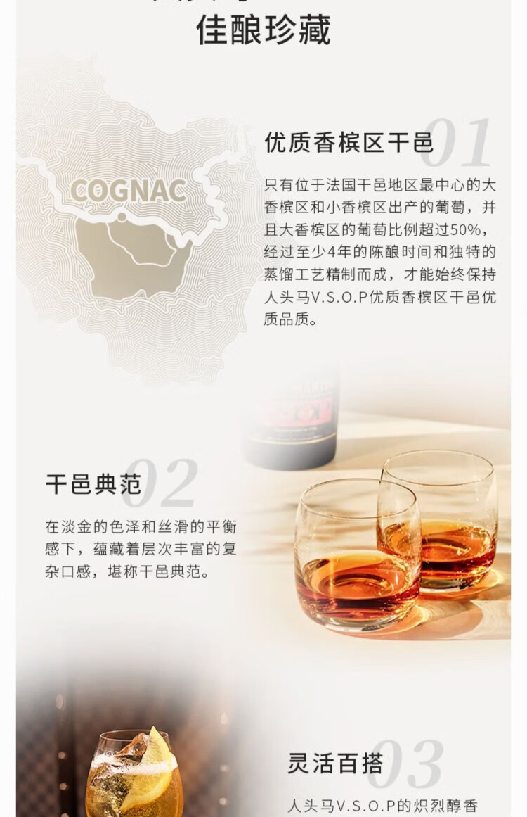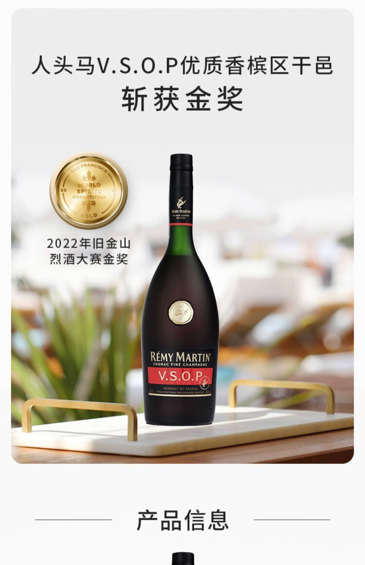 人头马(Remy Martin)洋酒 VSOP优质香槟区干邑白兰地 700ml(无盒版本)