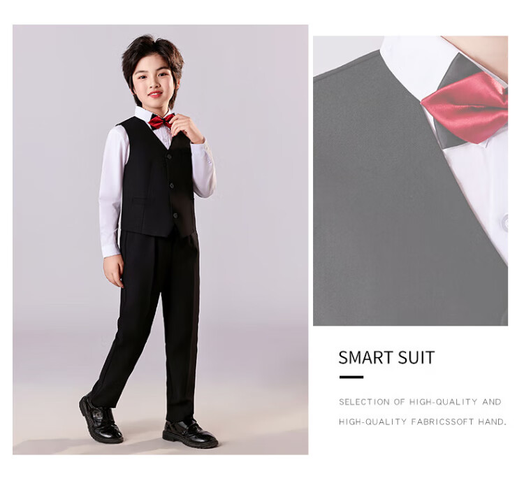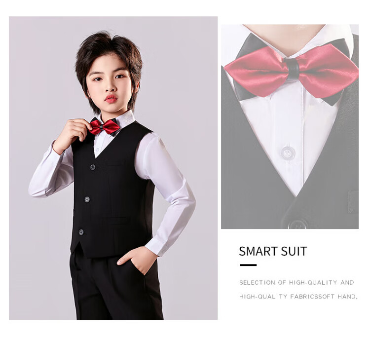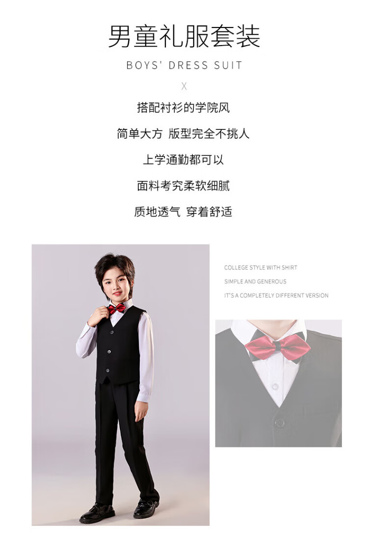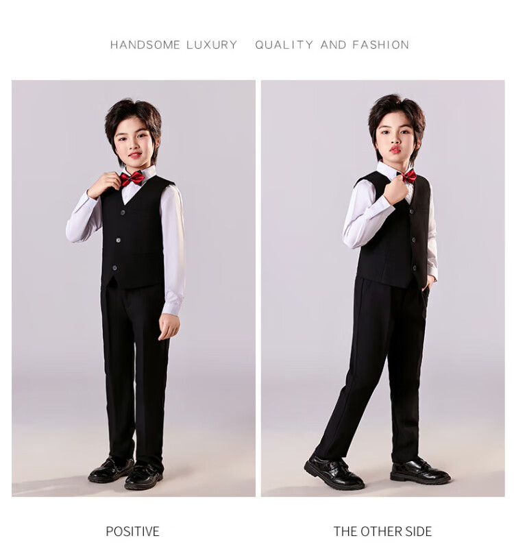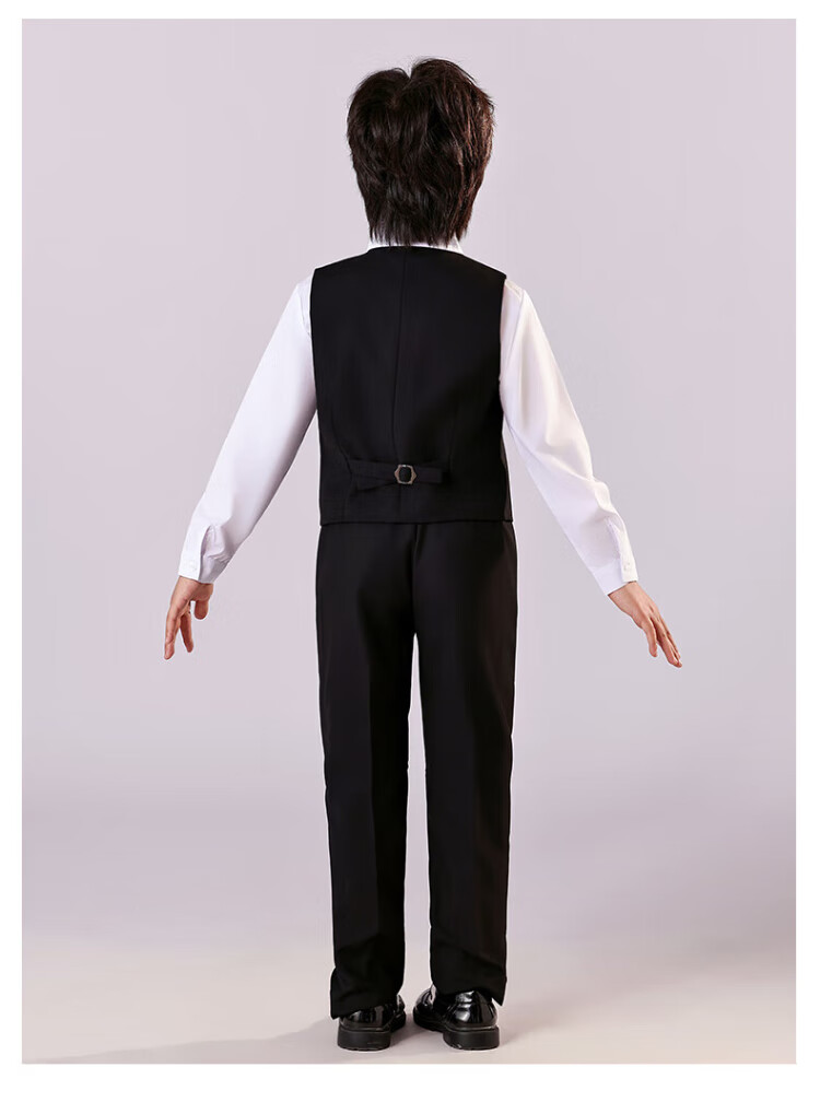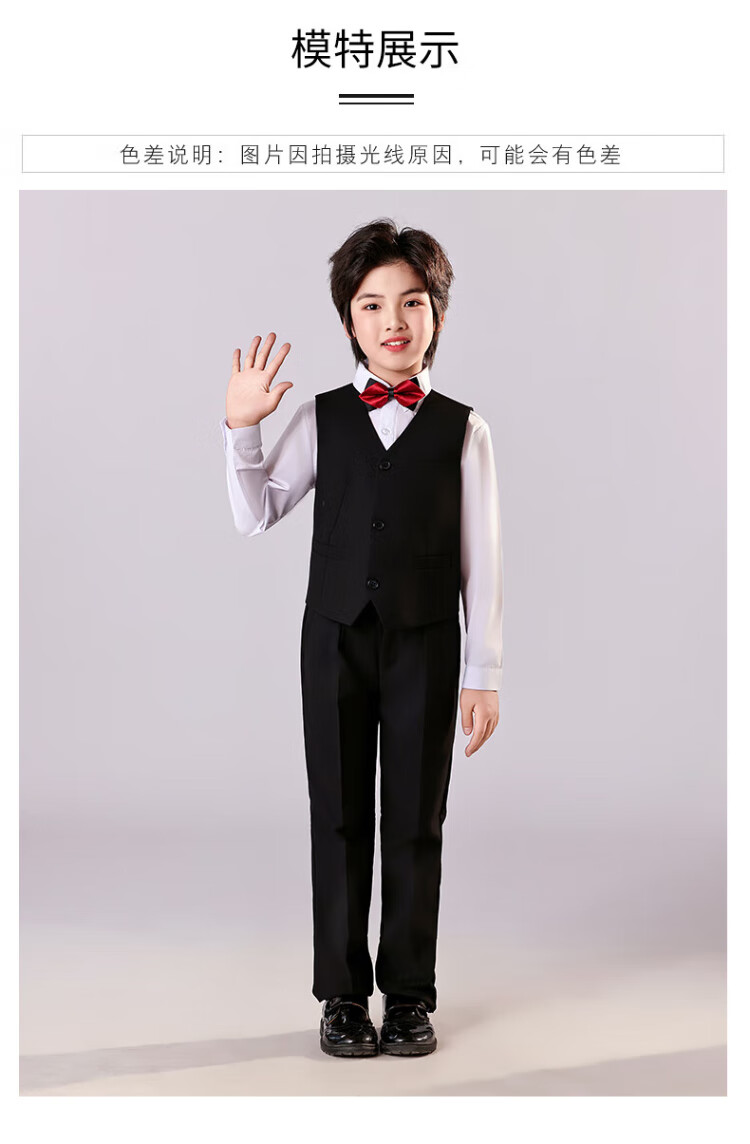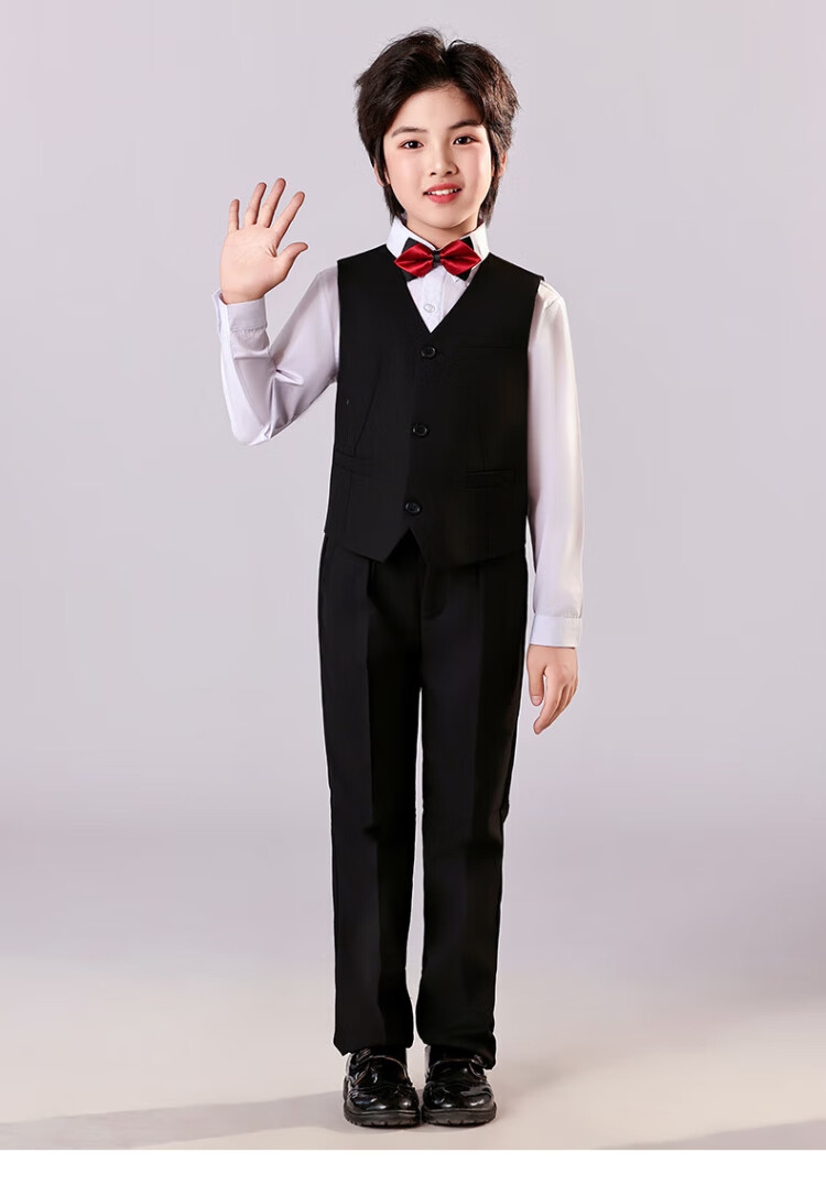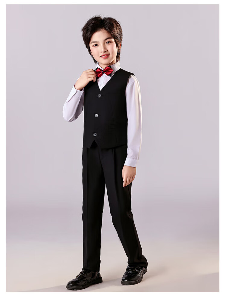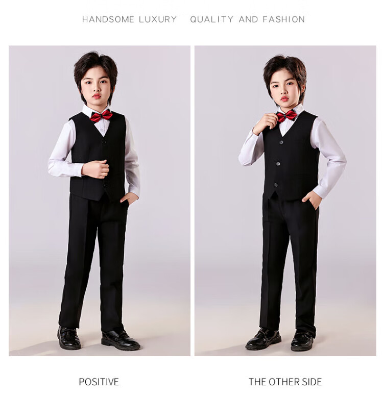 安妮优儿儿童礼服西装套装男童英伦风花童演出服主持人帅气童装 黑色 120