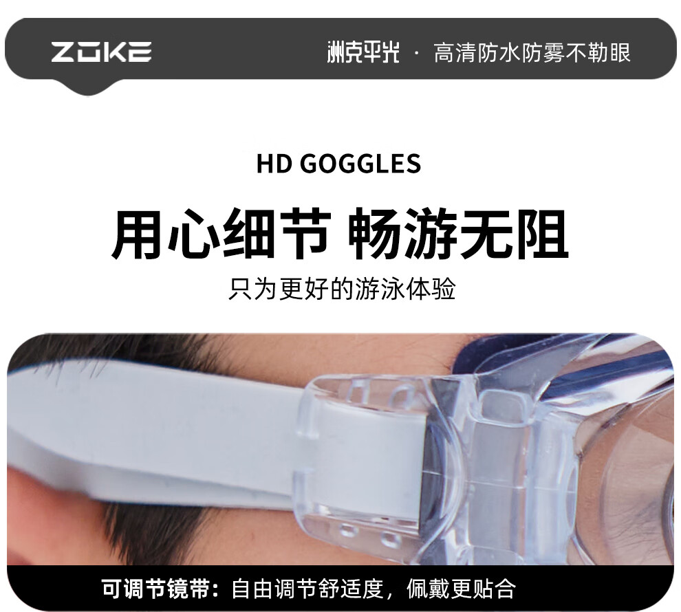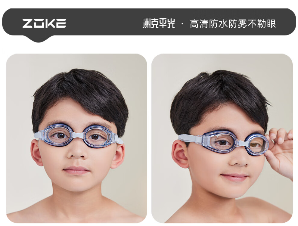 洲克(ZOKE)儿童平光泳镜高清防水防雾护目镜舒适游泳潜水泳镜623502101-7