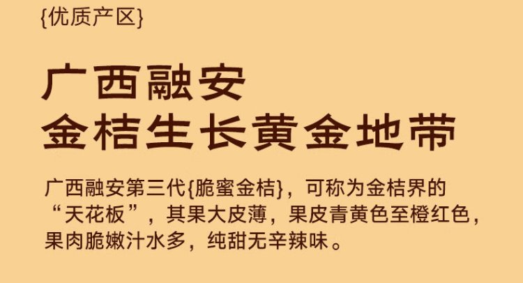 Jingdida Guangxi Rongan Kumquat Three Generations Crisp Honey Kumquat net weight 3Jin Jin is equal to 0.5kg. The single kumquat fruit is about 21g. Straight from the fruit source.
