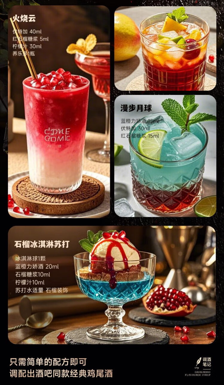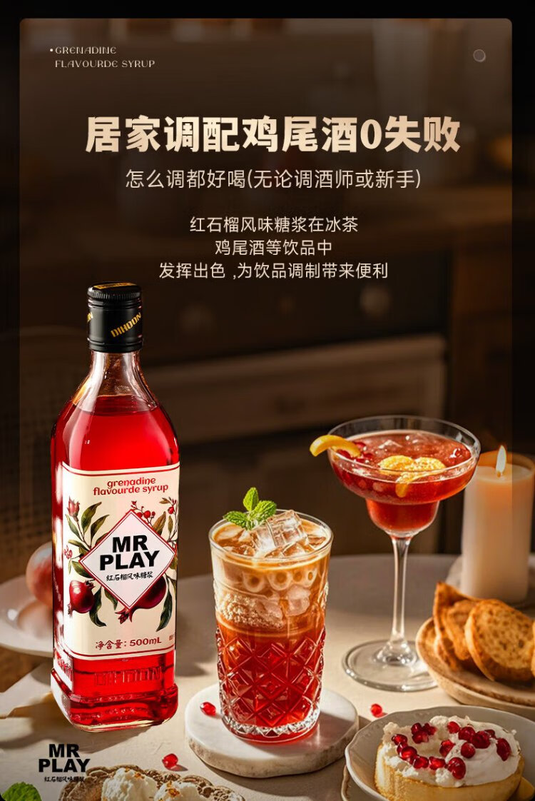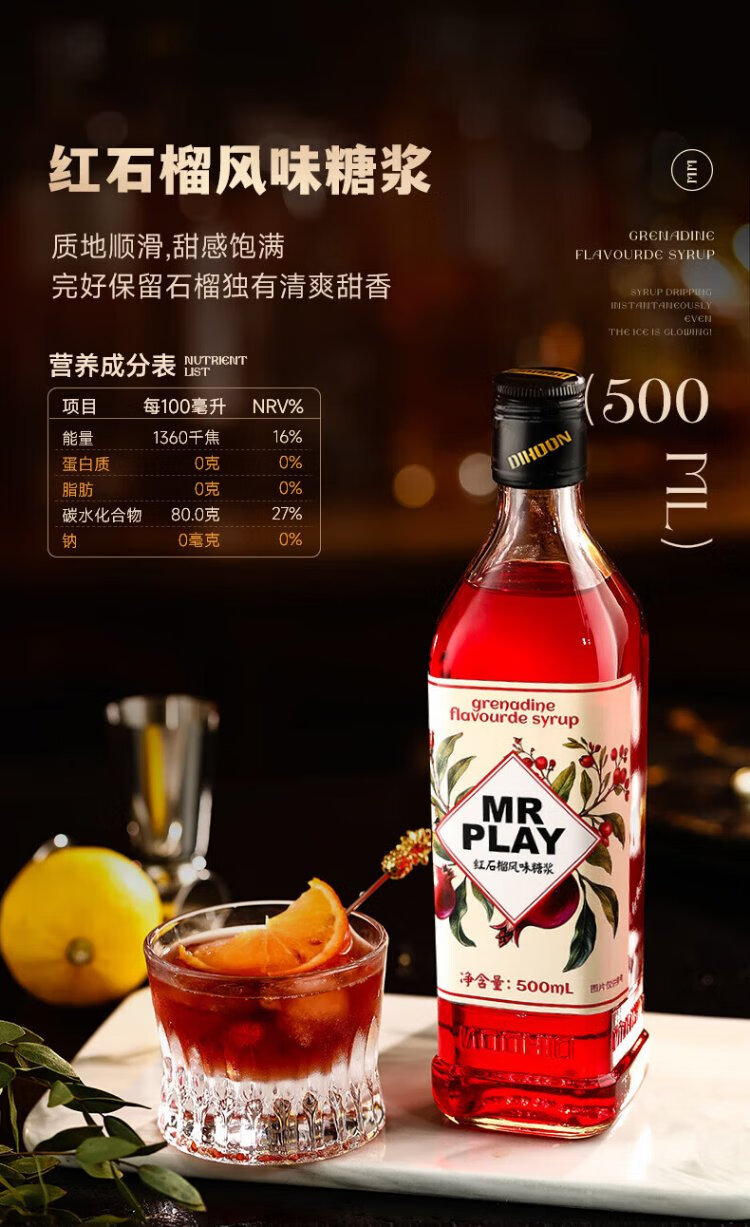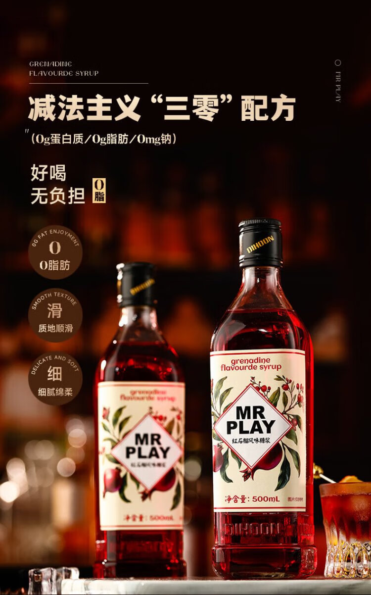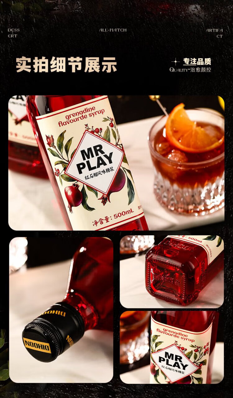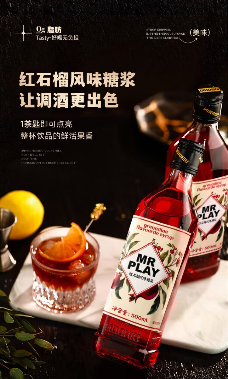 Mr play红石榴风味糖浆500ml单瓶调酒必备