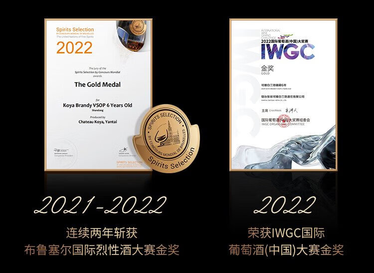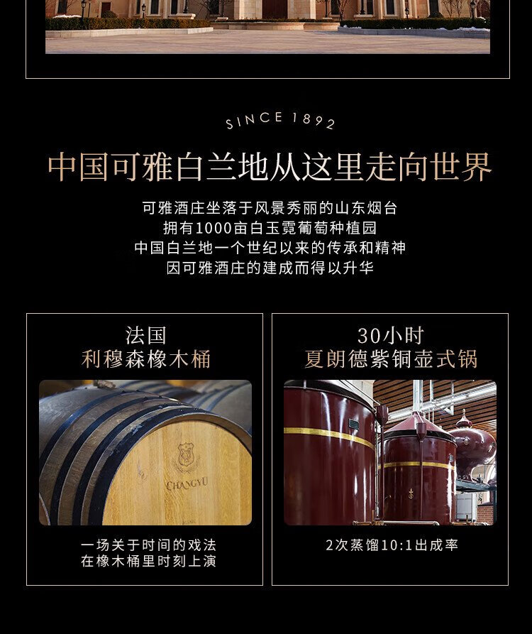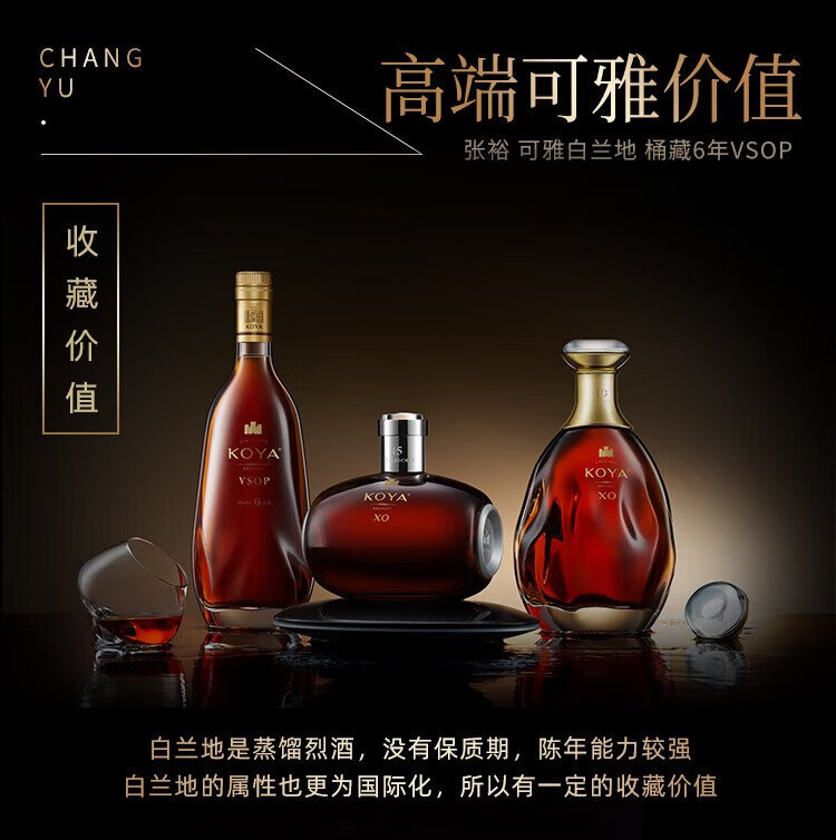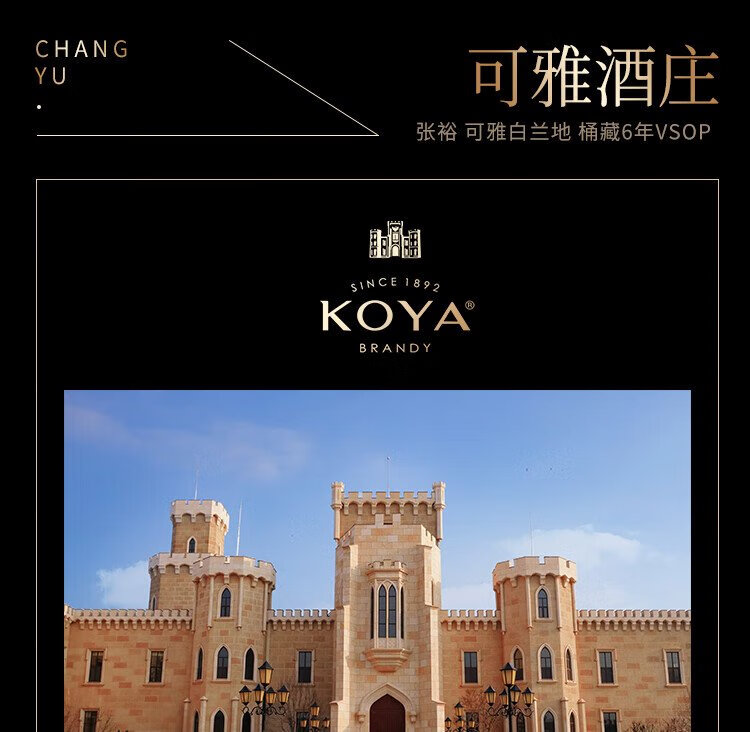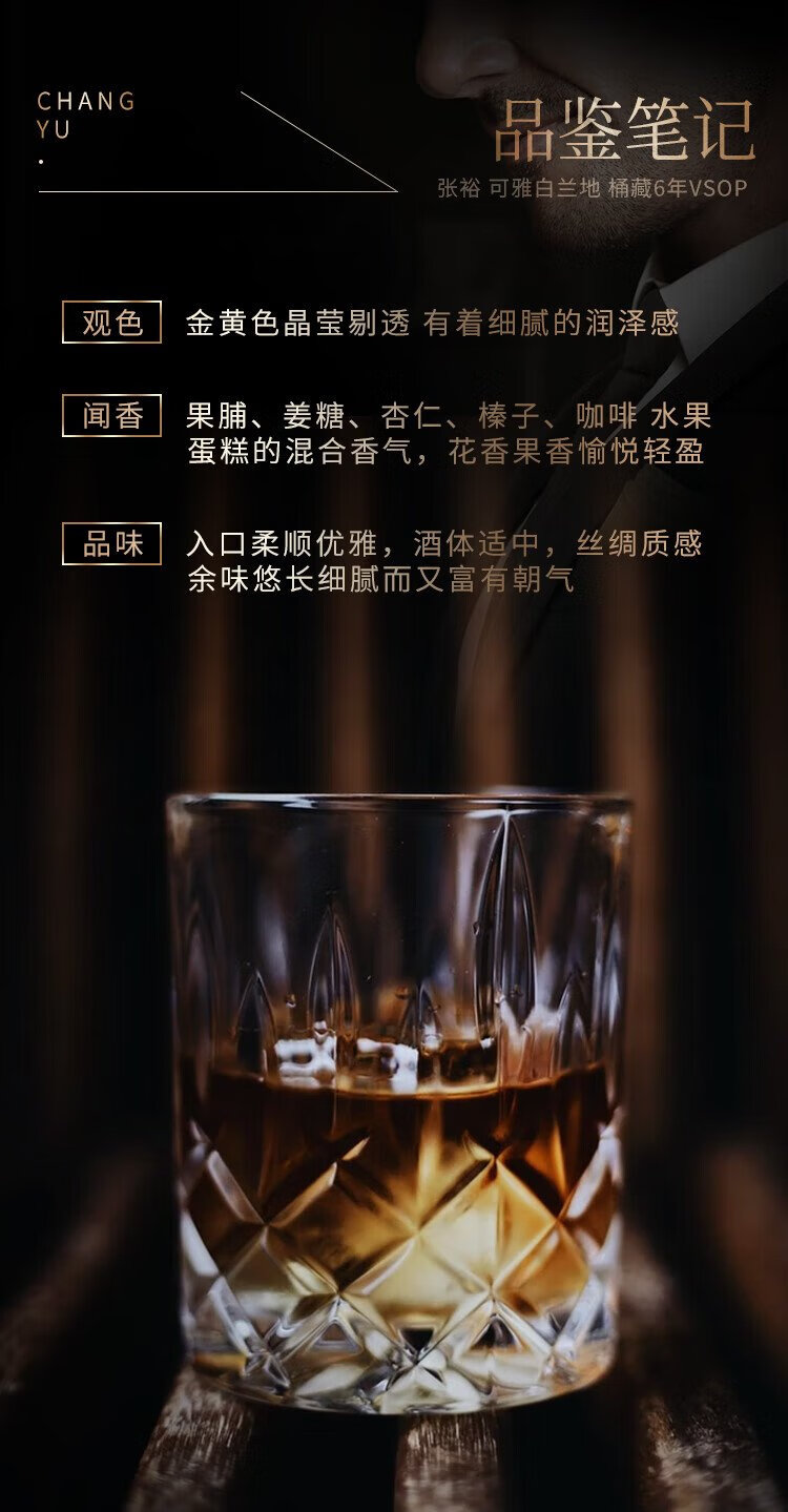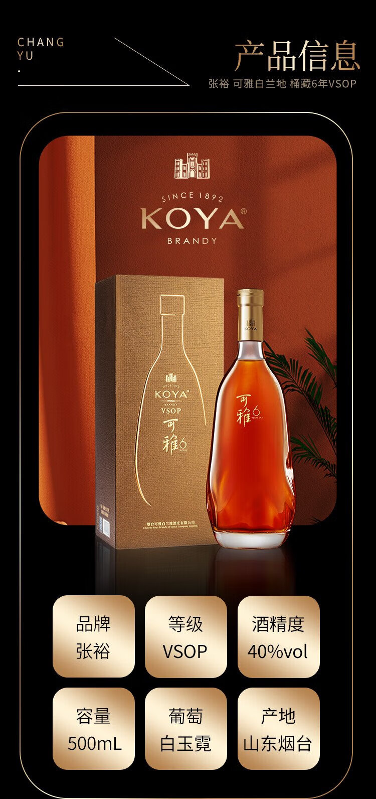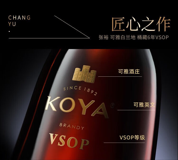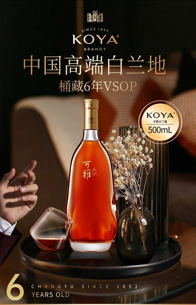 张裕可雅白兰地 桶藏6年VSOP 500ml 单瓶装 洋酒礼盒送礼