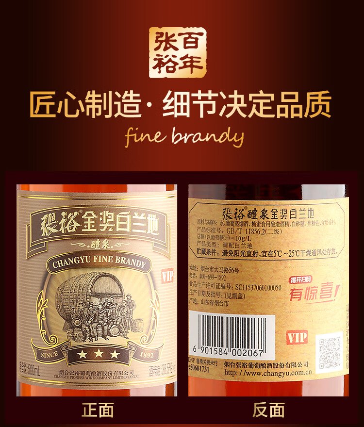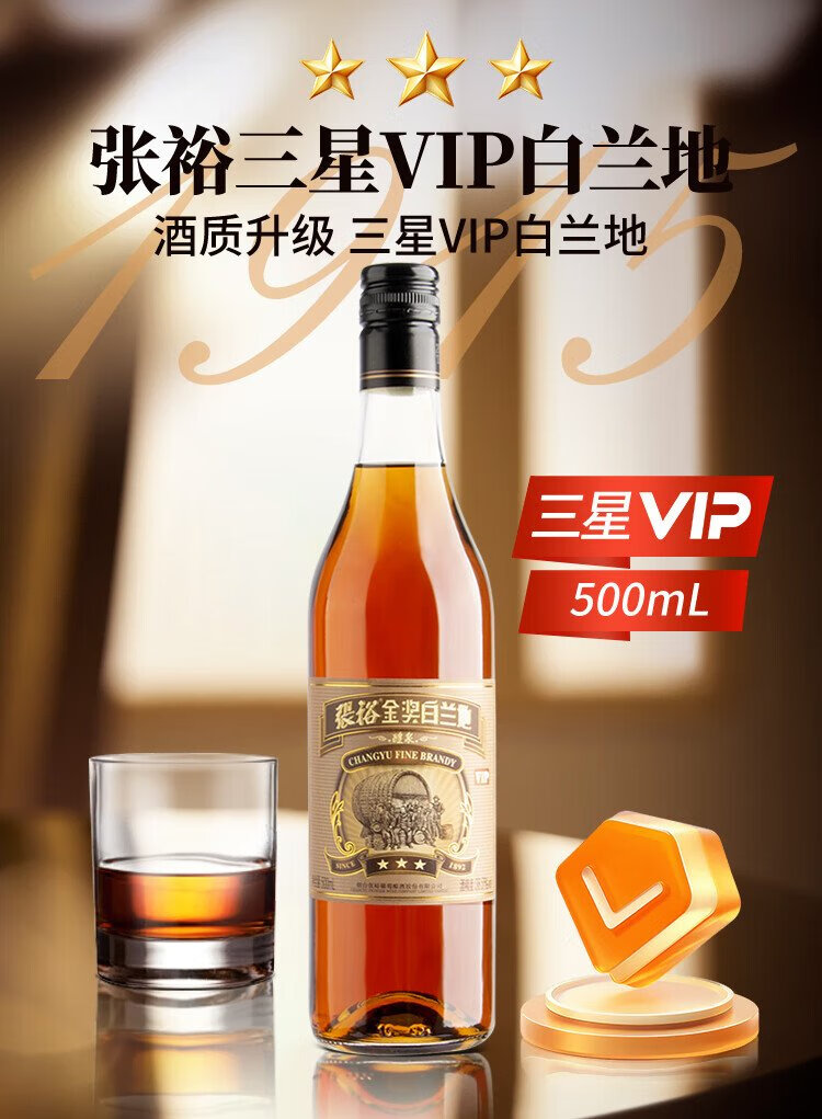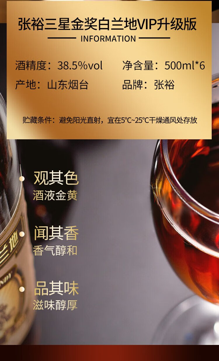 张裕 三星VIP金奖白兰地 500ml*6瓶 整箱装 三星升级版洋酒 礼物送礼