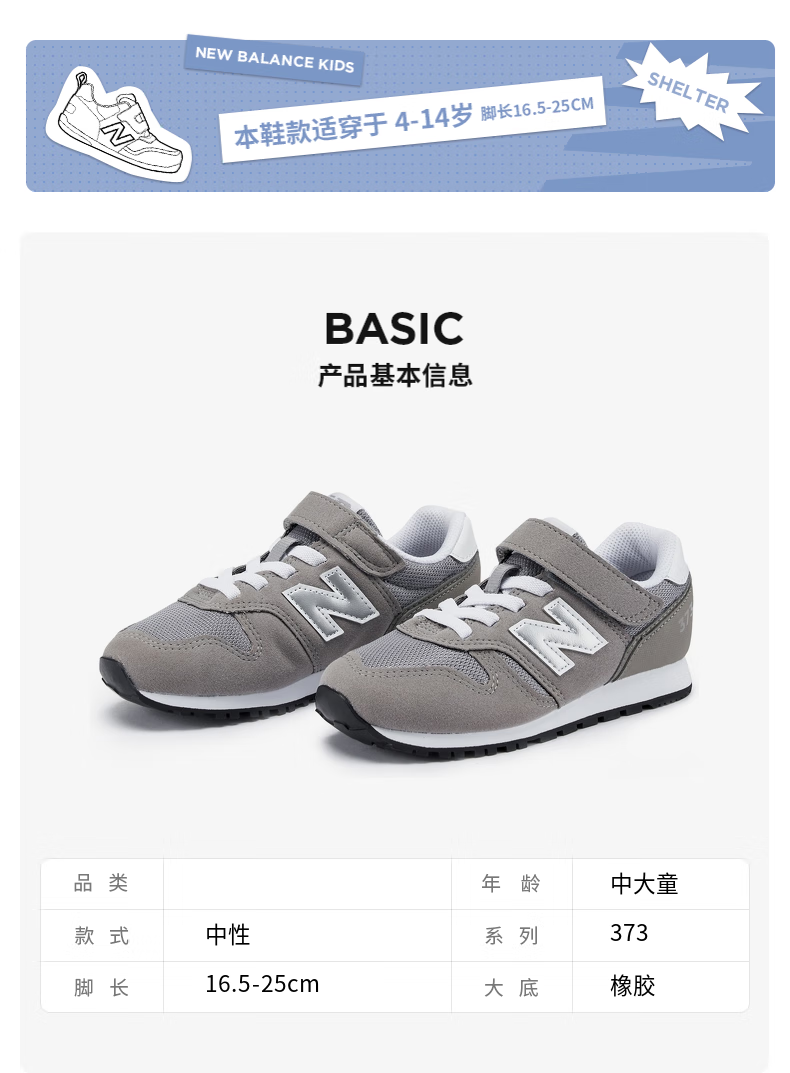 NEW BALANCE4-14岁大童秋冬时尚百搭休闲运动鞋373KG