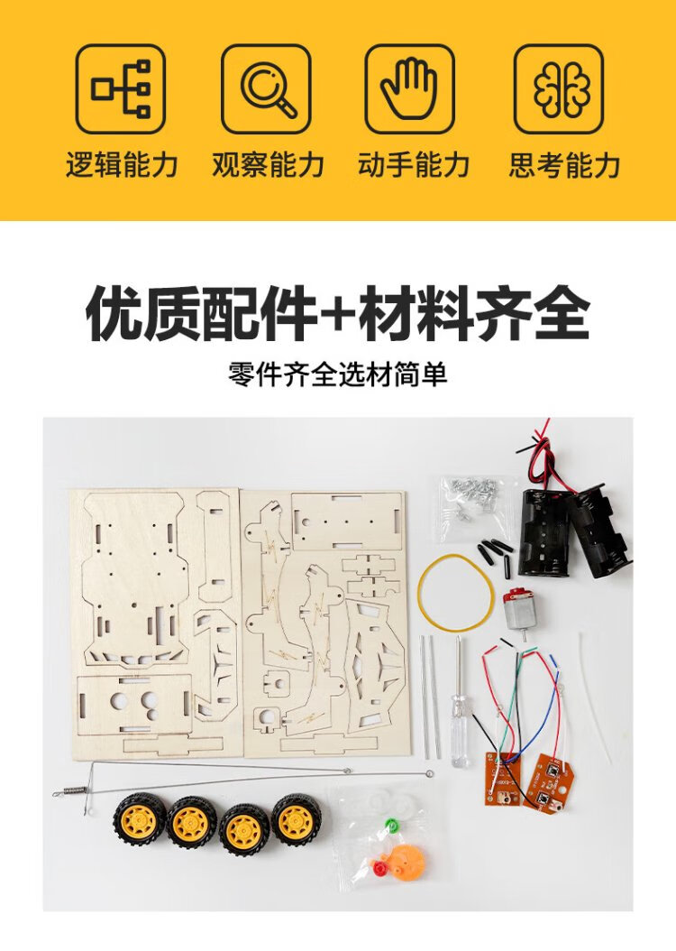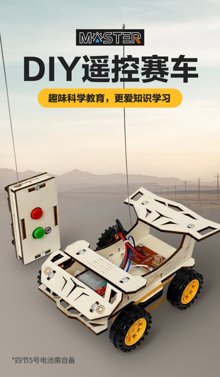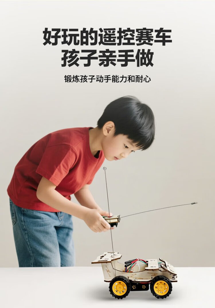 大眼小娃遥控赛车steam科学小实验套装儿童DIY手工制作玩具男女孩生日礼物