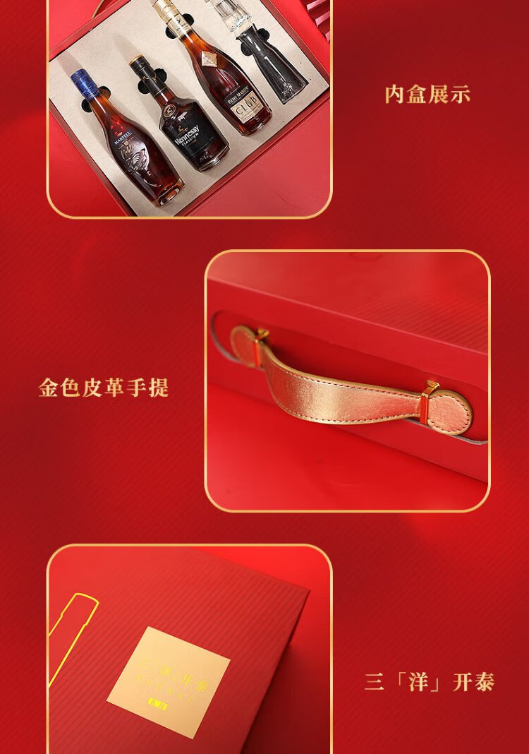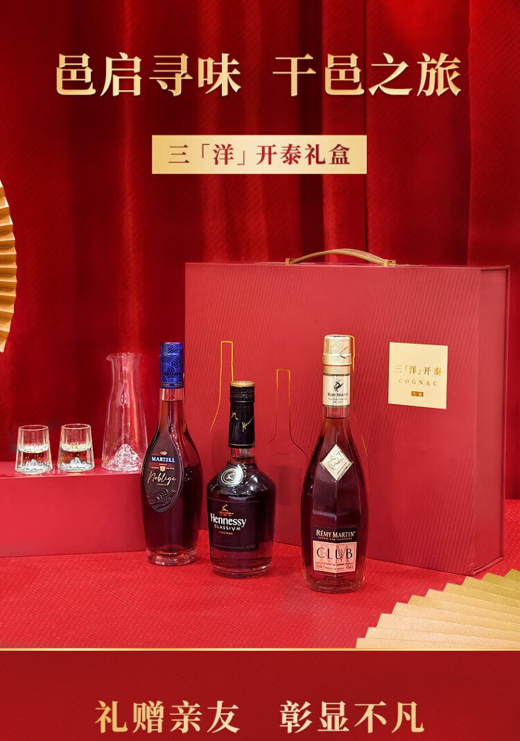 马爹利 人头马 轩尼诗 干邑白兰地 350ml*3瓶 三洋开泰 礼盒