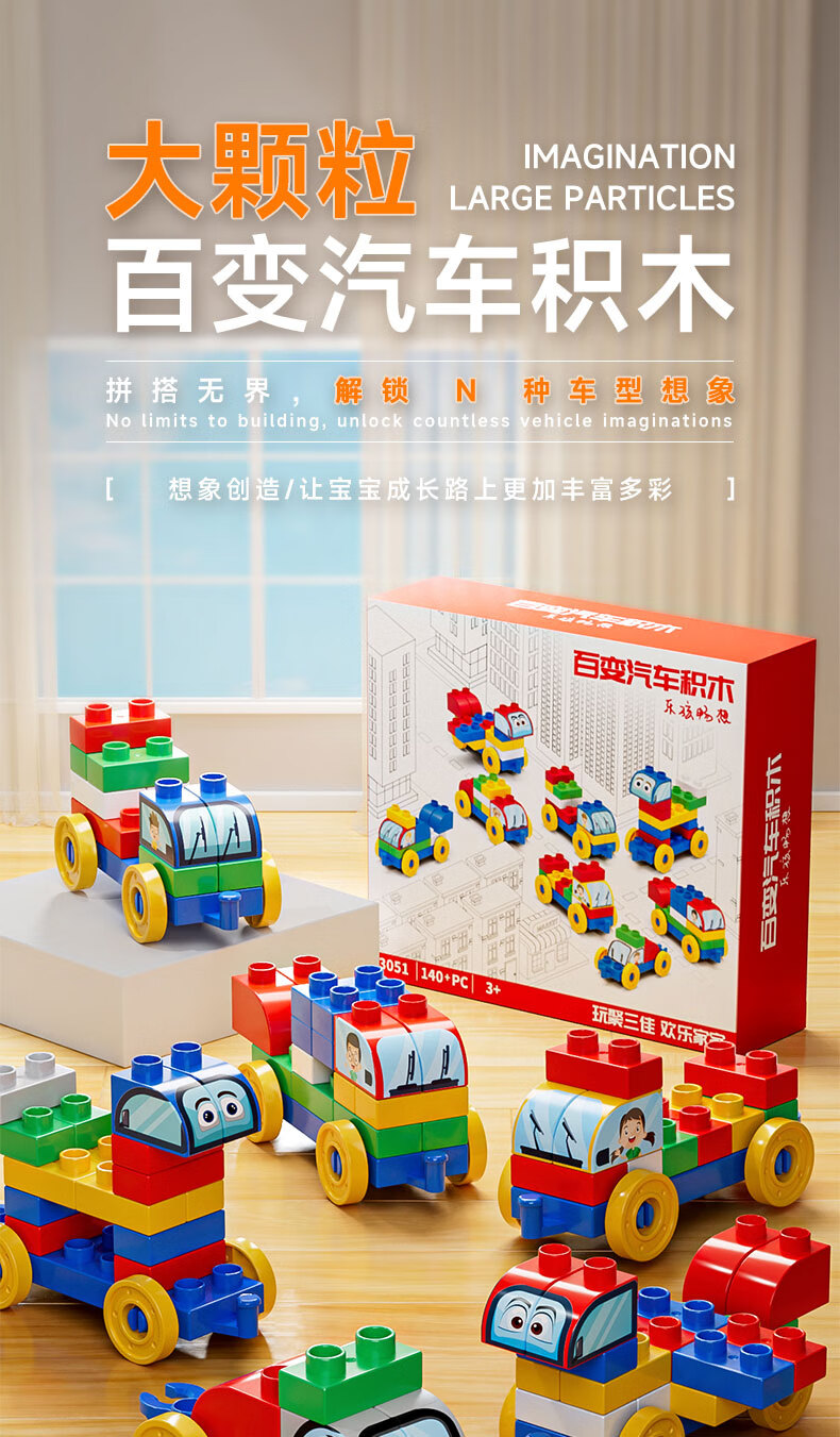 斯纳恩(Snaen)积木车儿童玩具拼装大颗粒宝宝百变小汽车拼插益智男女孩生日礼物