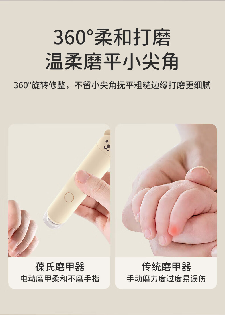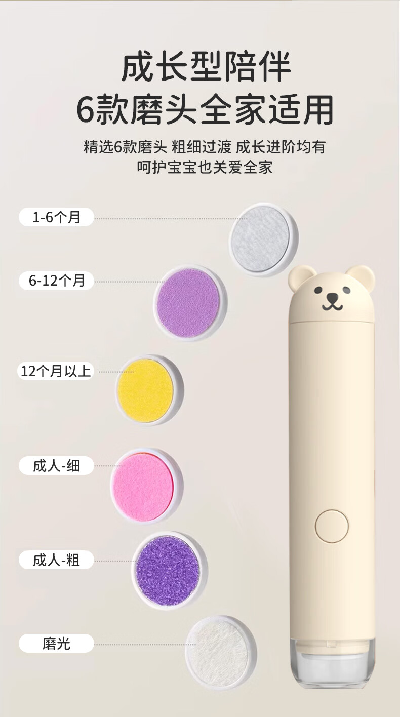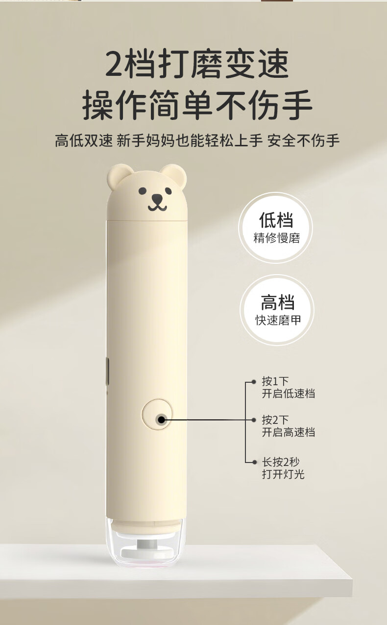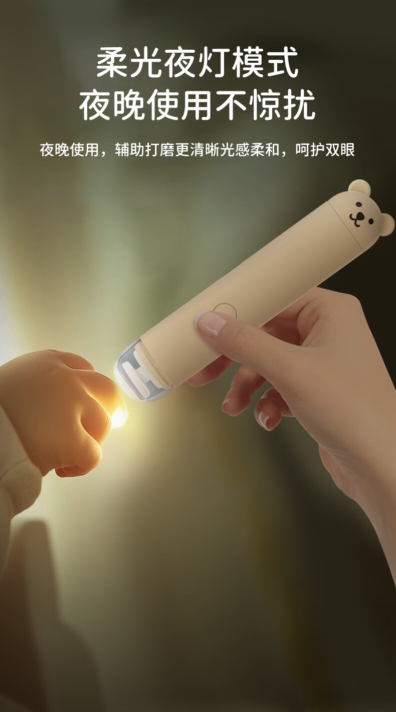 葆氏婴儿磨甲器电动充电儿童指甲刀剪套装宝宝新生儿专用防夹肉带夜灯