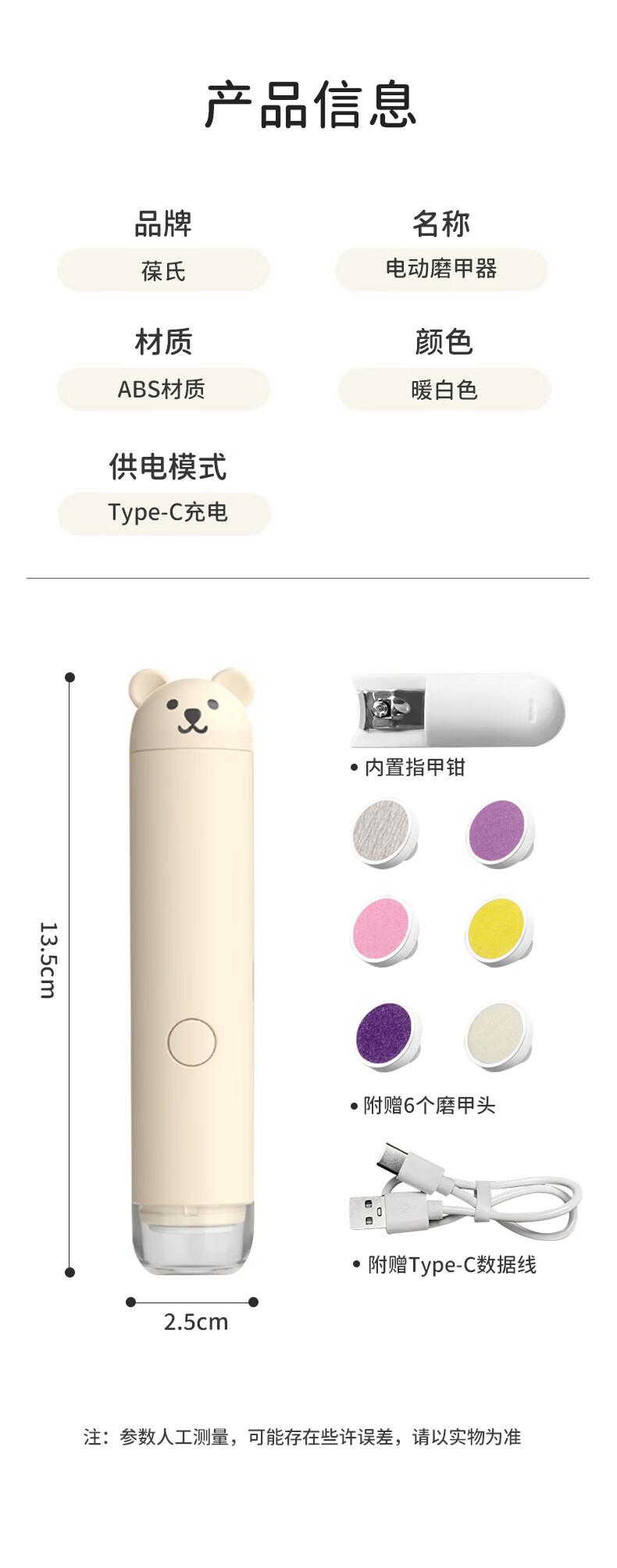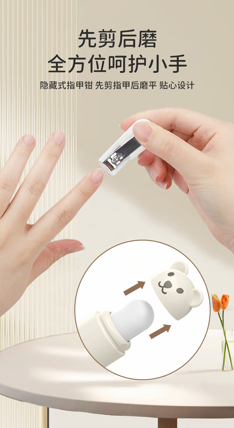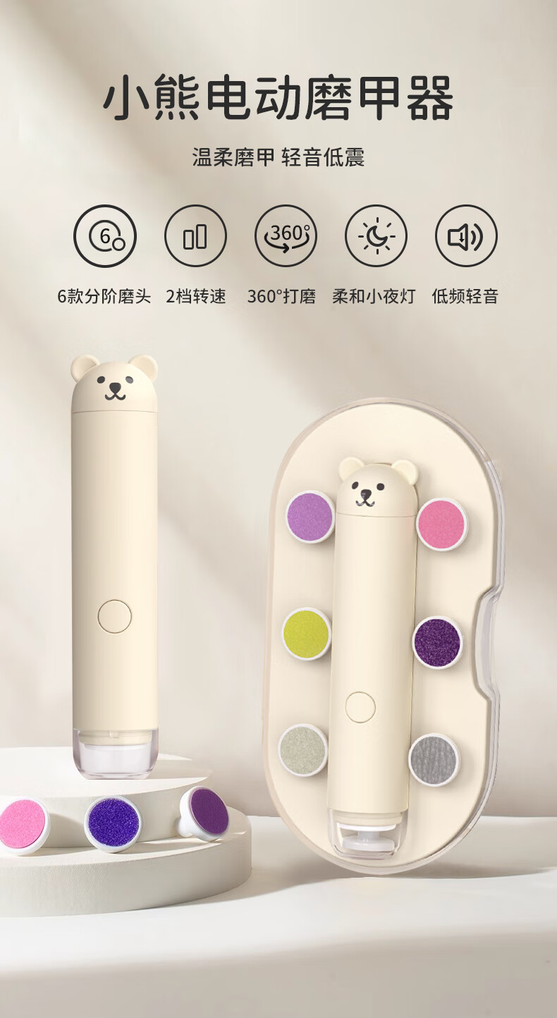葆氏婴儿磨甲器电动充电儿童指甲刀剪套装宝宝新生儿专用防夹肉带夜灯
