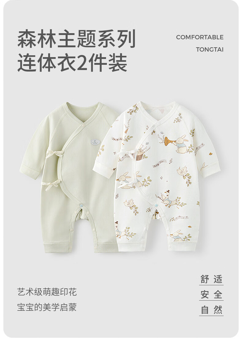 童泰(TONGTAI)婴儿连体衣春秋季纯棉衣服初生宝宝蝴蝶哈衣爬服满月服黄色59cm