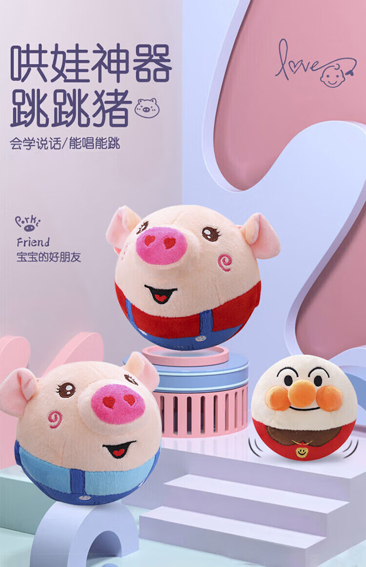 Le Aixiang Jumping Pig Bounce Ball Singing Recording Learning Speech Repeat Baby Toy 0-1 Years Old Birthday Gift
