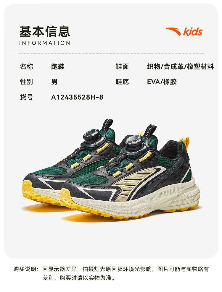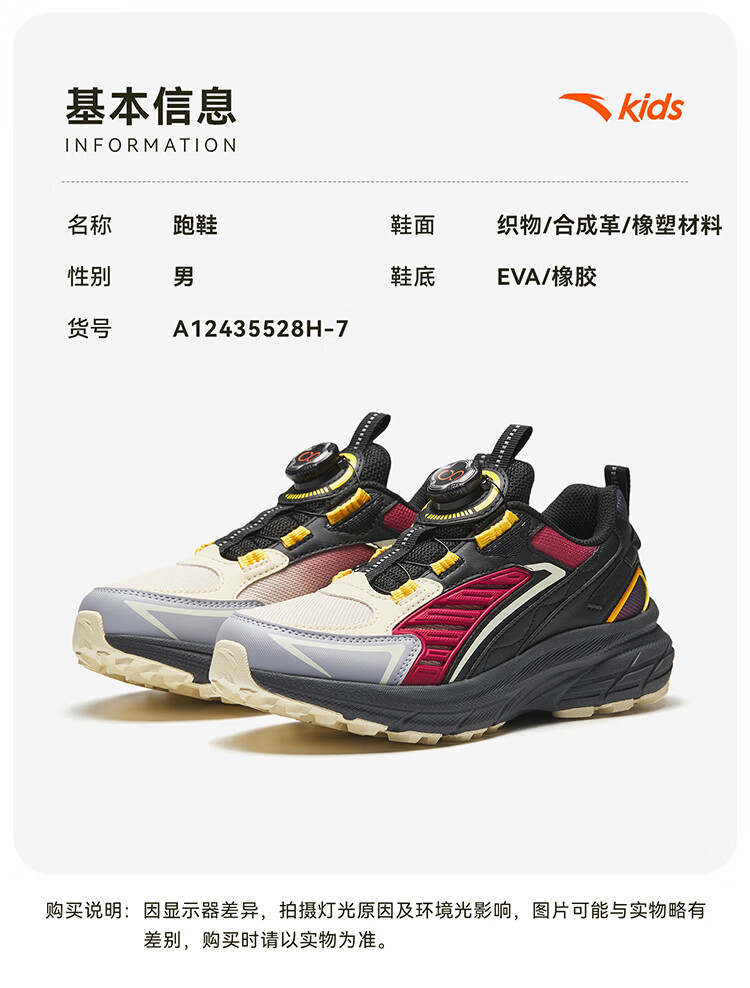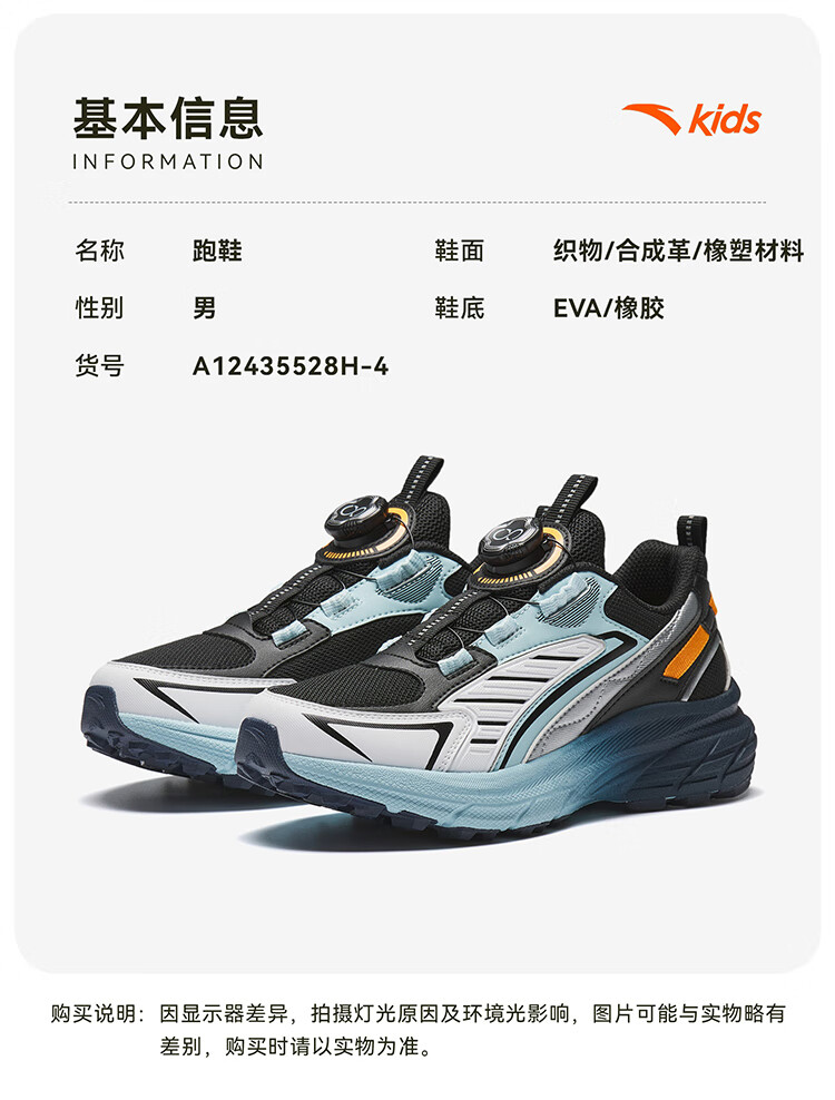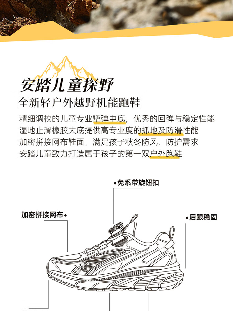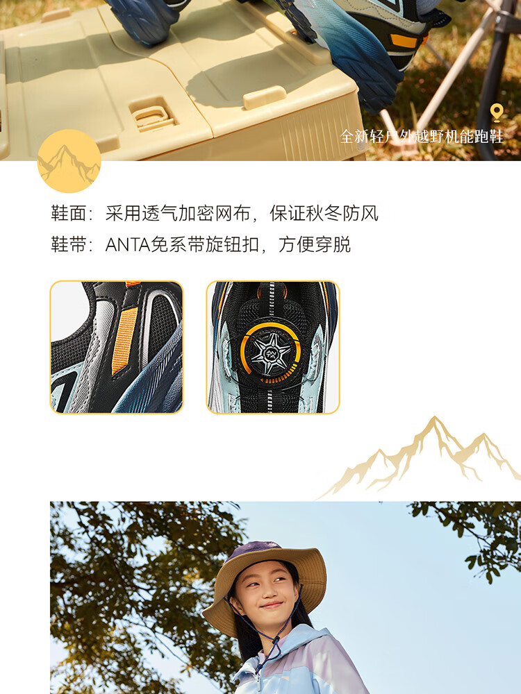 安踏儿童运动鞋男童探野户外跑步鞋2025跑鞋登山鞋子A12435528H