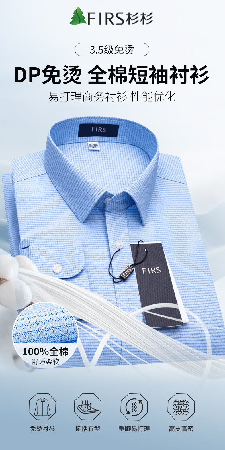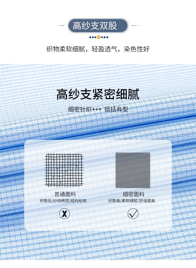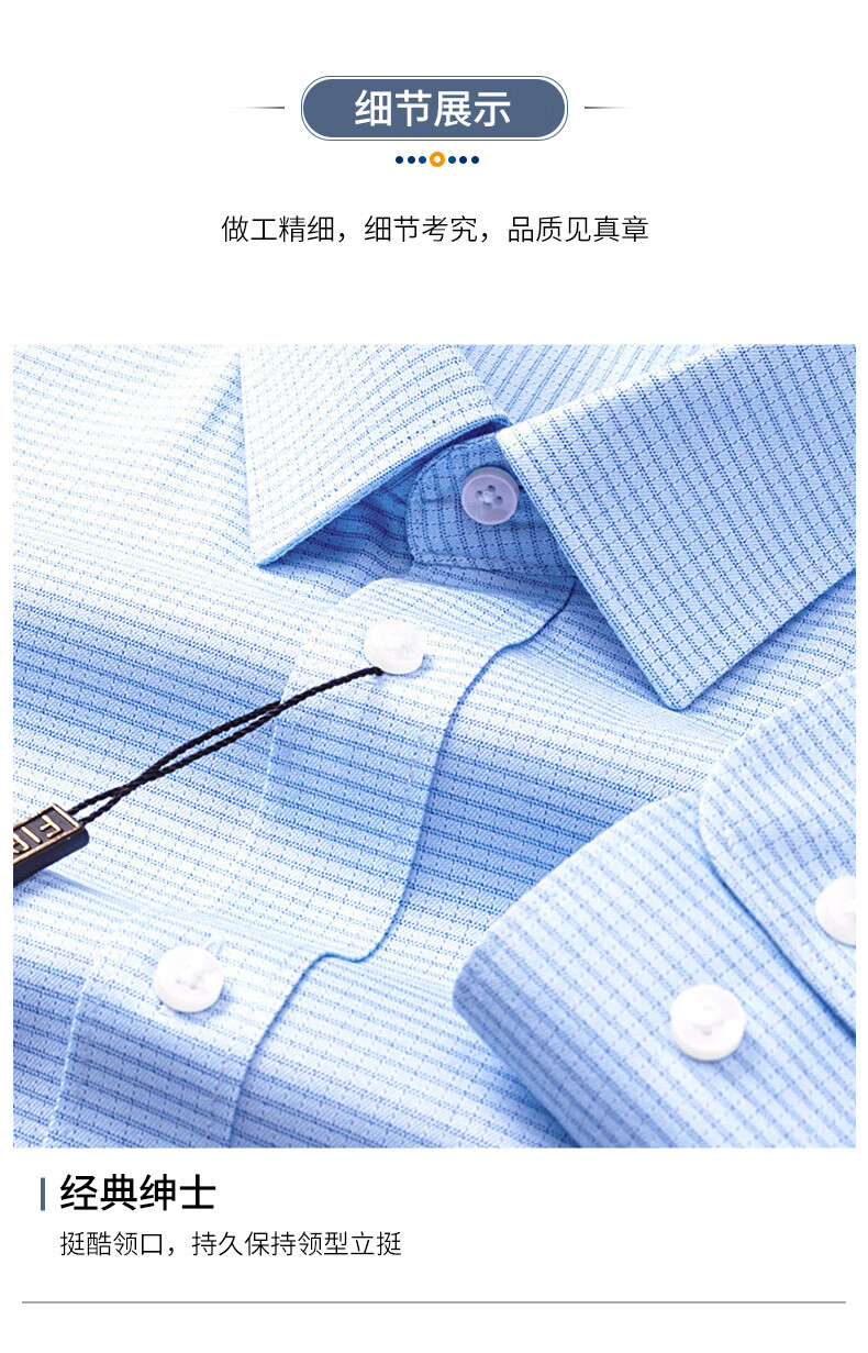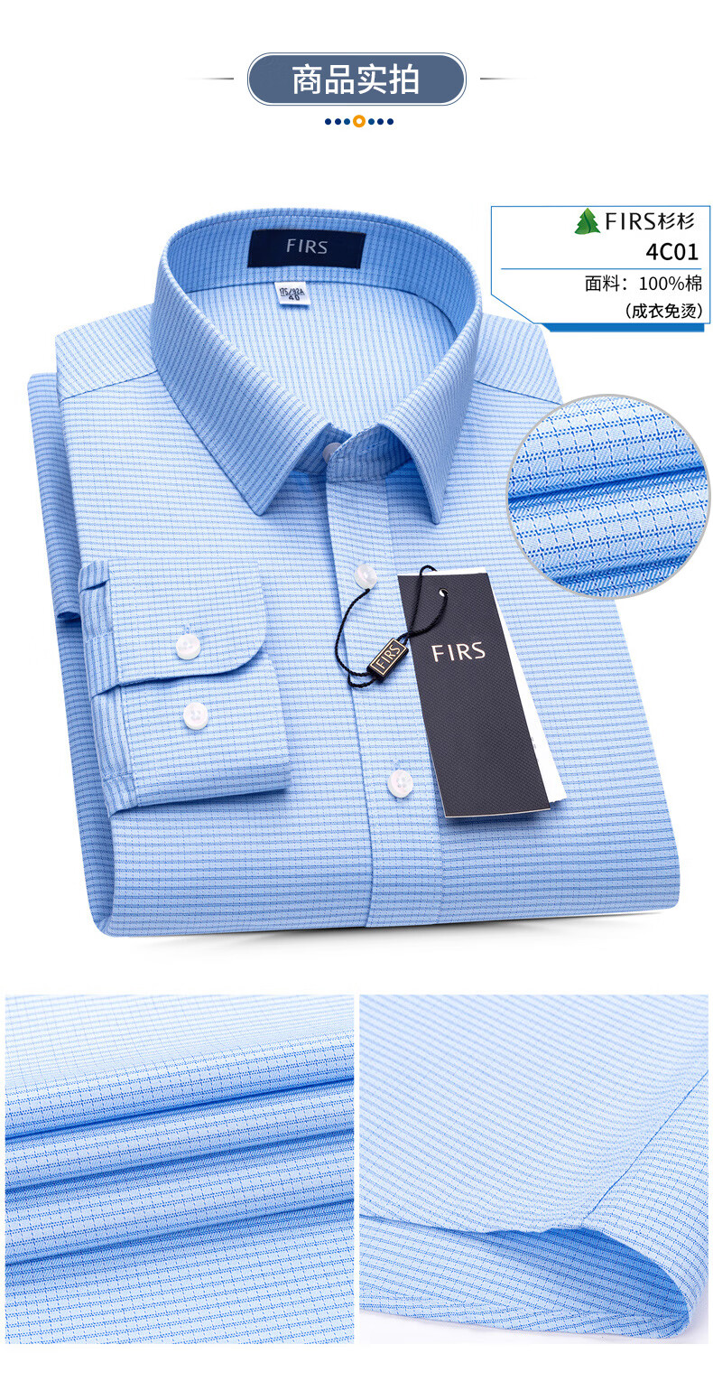 Shanshan (FIRS) DP no-iron long-sleeved shirt men's pure cotton business formal wear cotton no-iron shirt blue small grid 42
