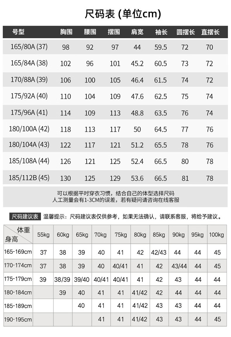 China (cm) 160-165/84-86 165-170 / 88-90 167-172 / 92-96 168-173 / 98-102 170-176 / 106-110