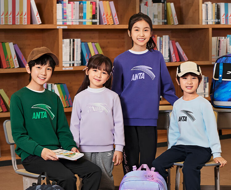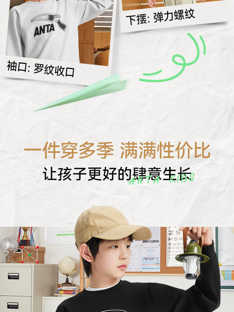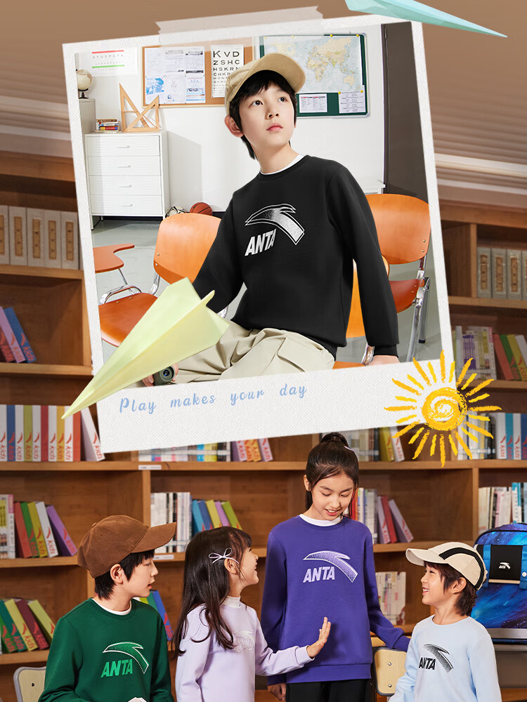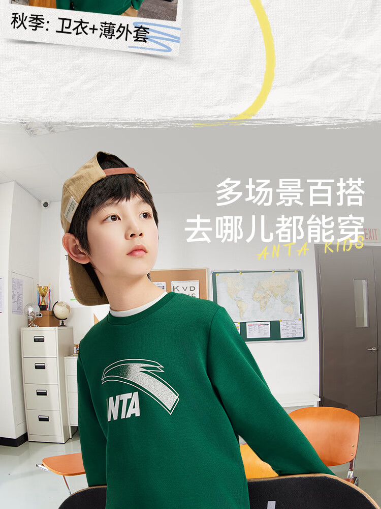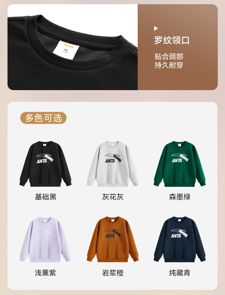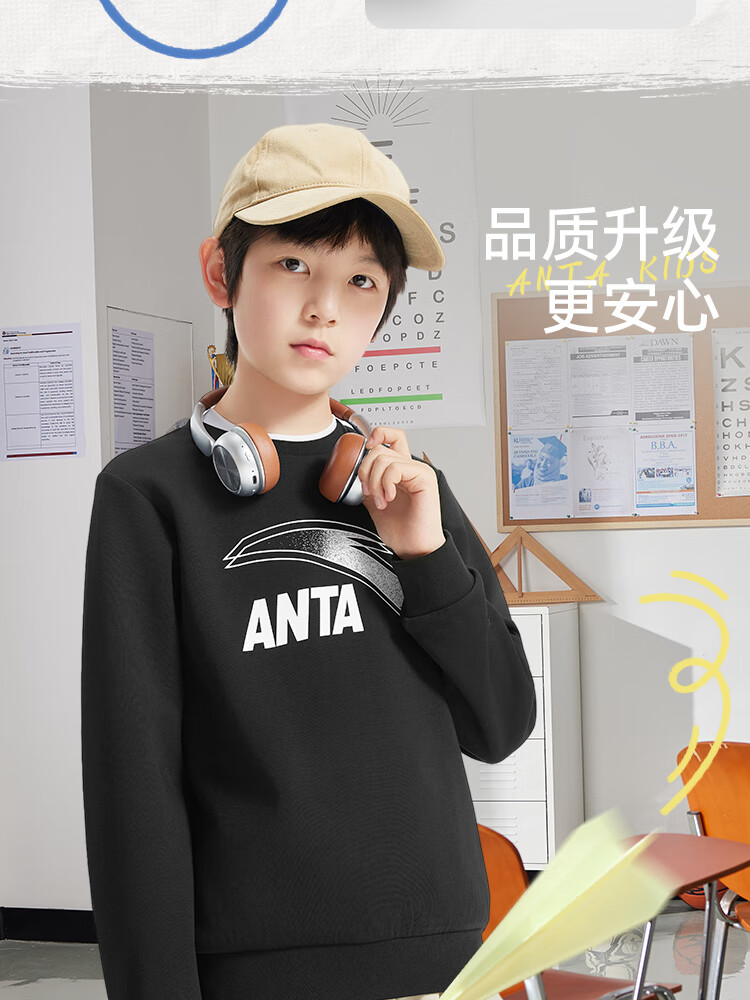 安踏儿童卫衣男女童套头衫2025秋百搭运动衫女孩打底衫A72535702