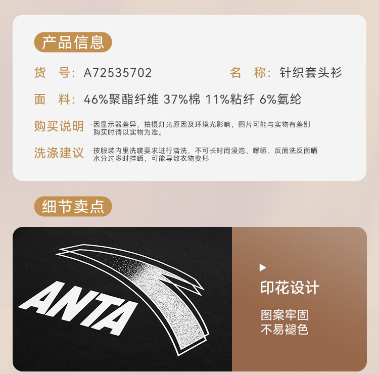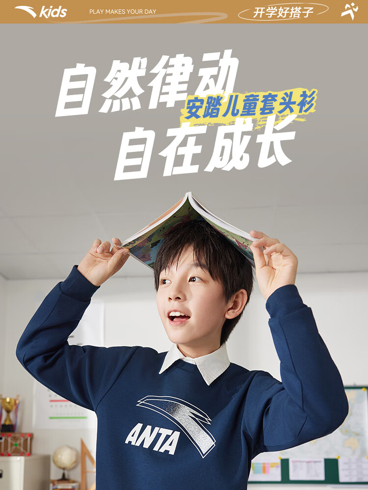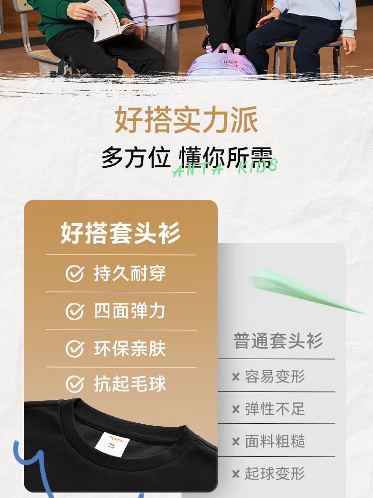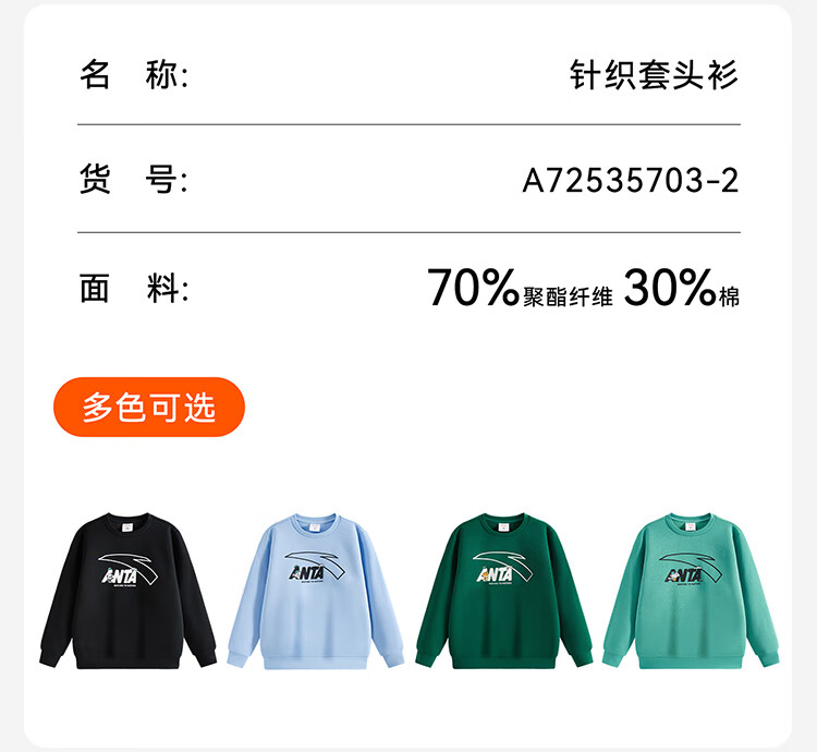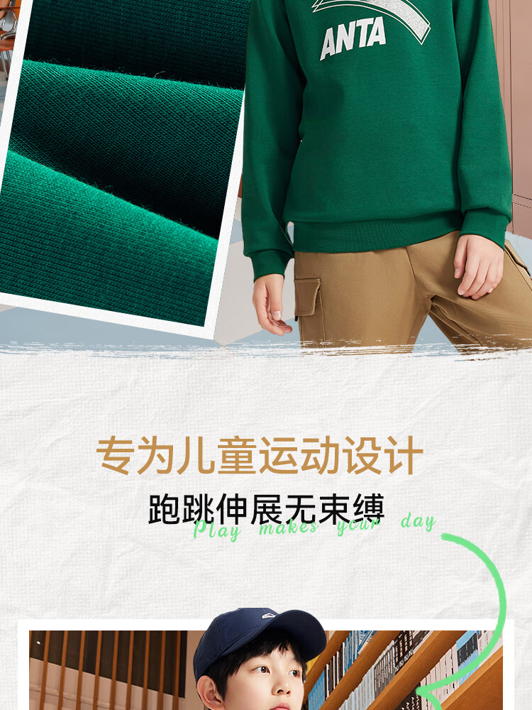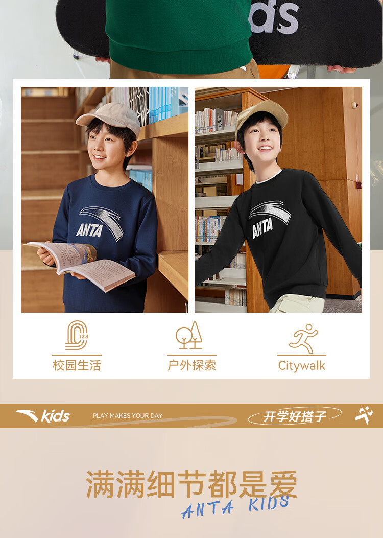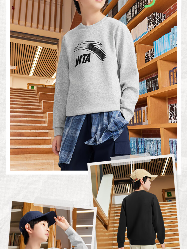 安踏儿童卫衣男女童套头衫2025秋百搭运动衫女孩打底衫A72535702
