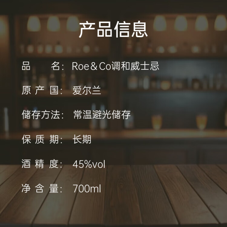 ROE & CO 爱尔兰调和威士忌 700ml 45度 裸瓶 进口洋酒