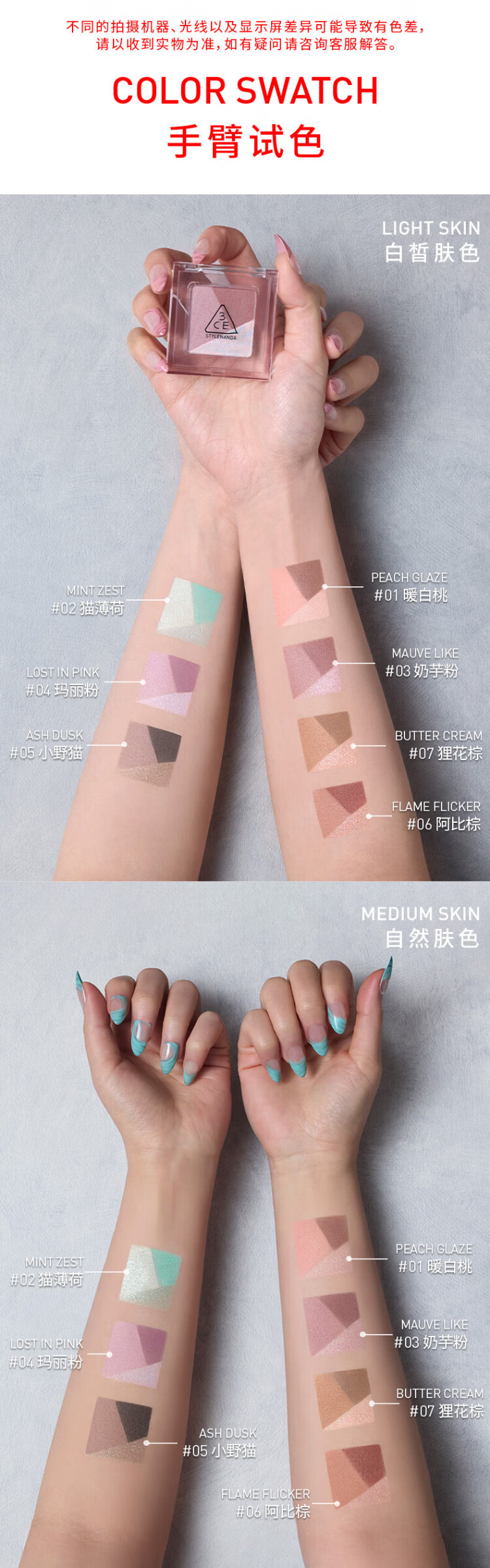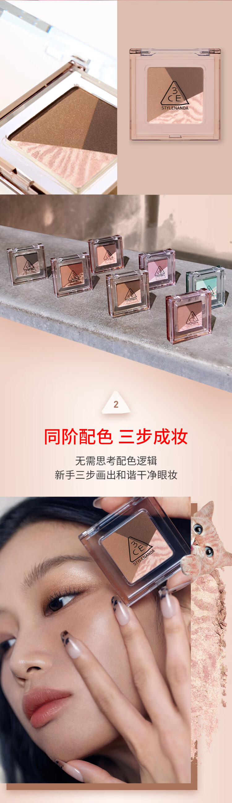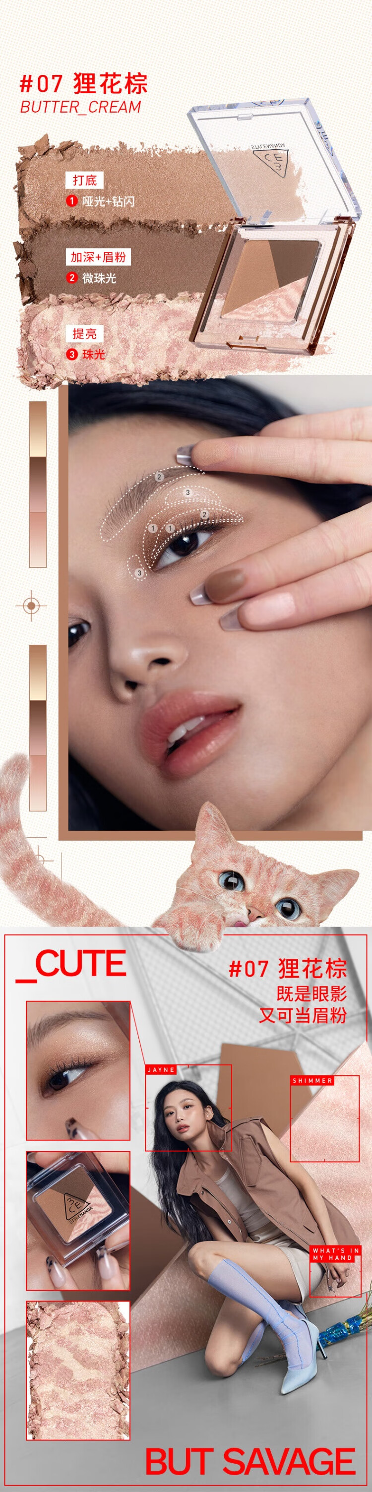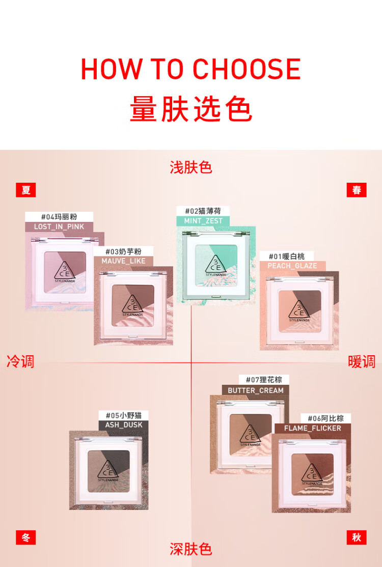 3CE方格眼影#07狸花棕哑光珠光修容提亮生日礼物送女友