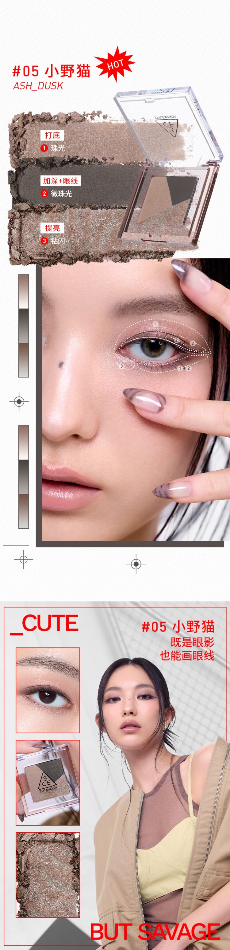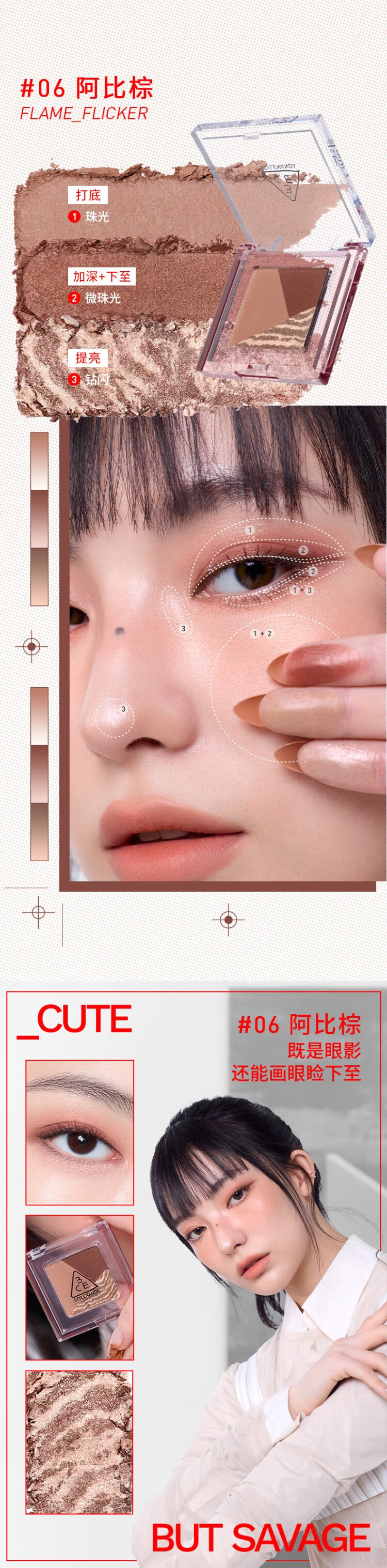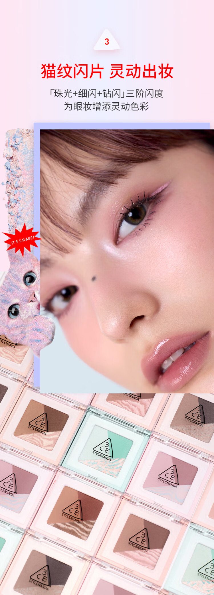 3CE方格眼影#07狸花棕哑光珠光修容提亮生日礼物送女友
