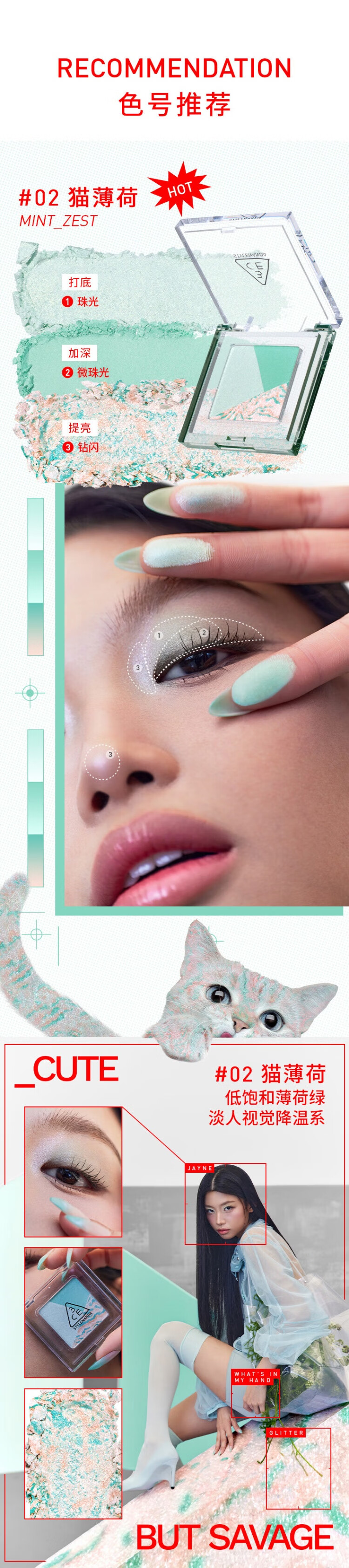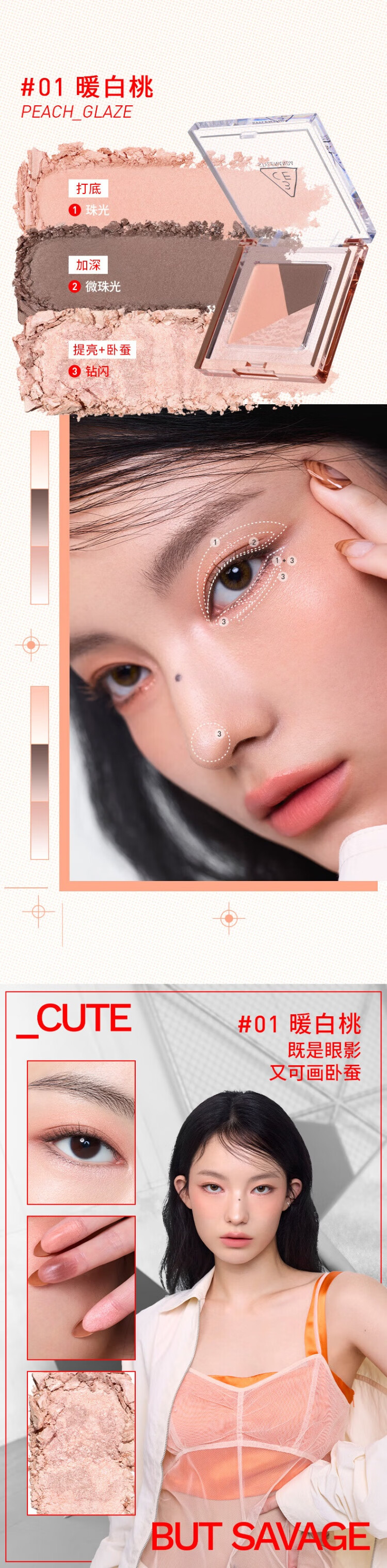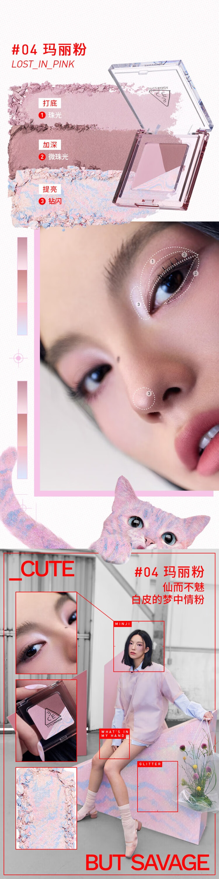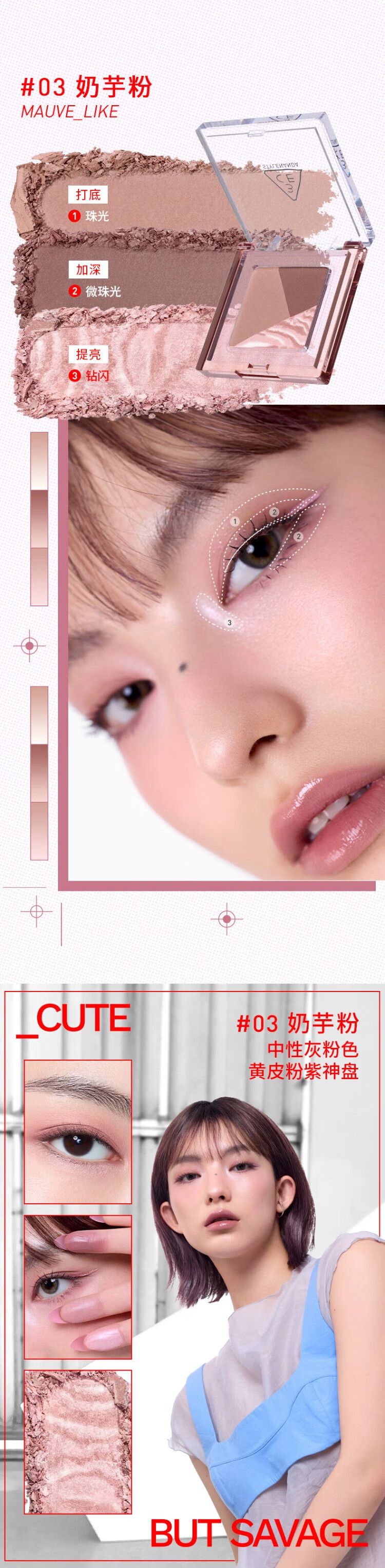 3CE方格眼影#07狸花棕哑光珠光修容提亮生日礼物送女友
