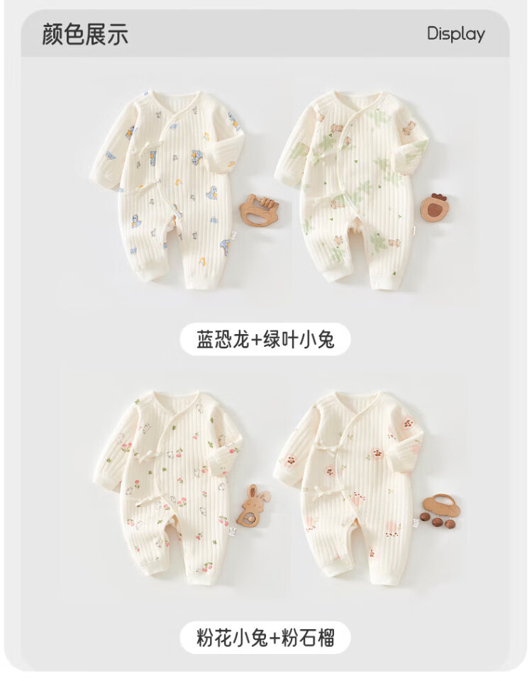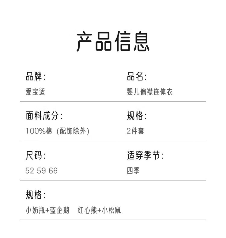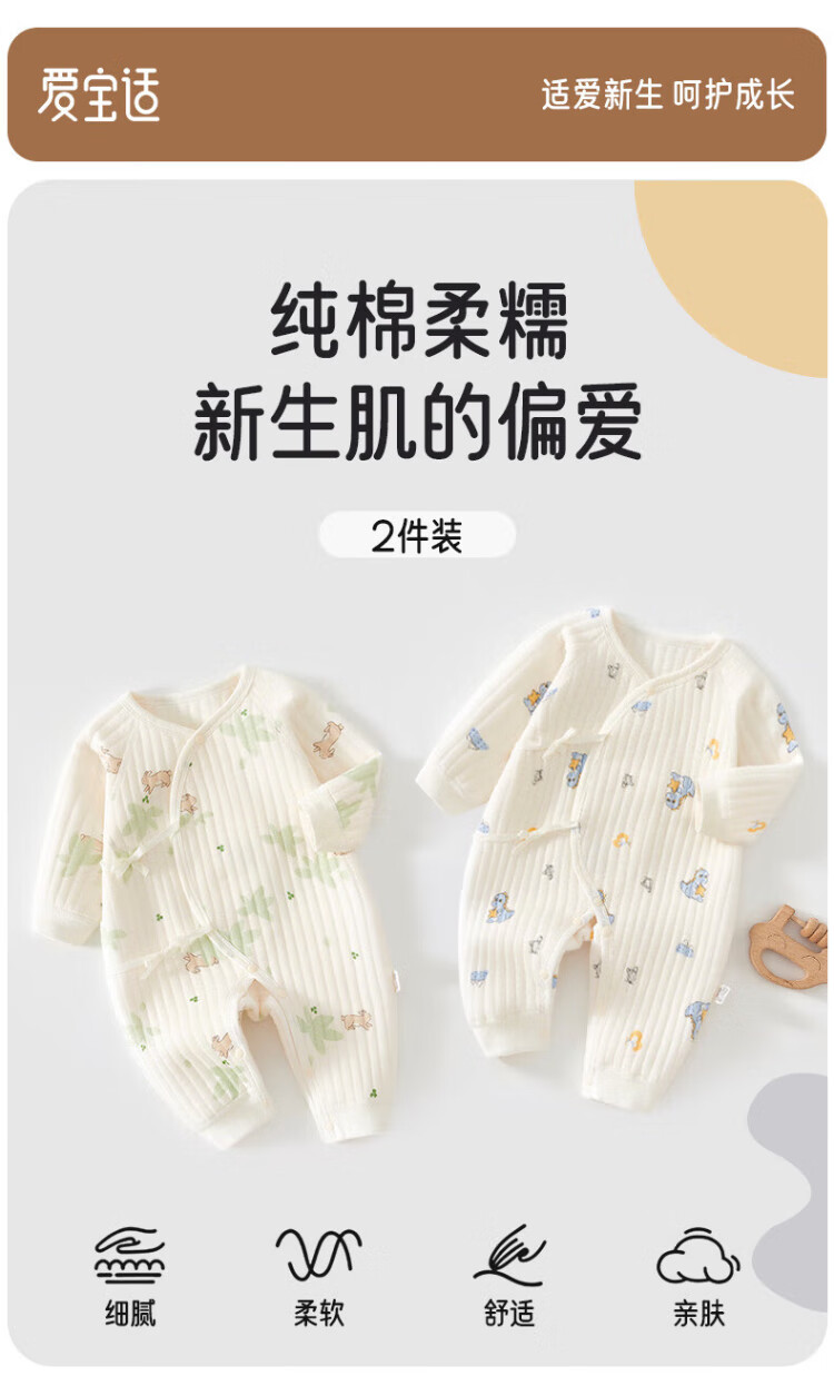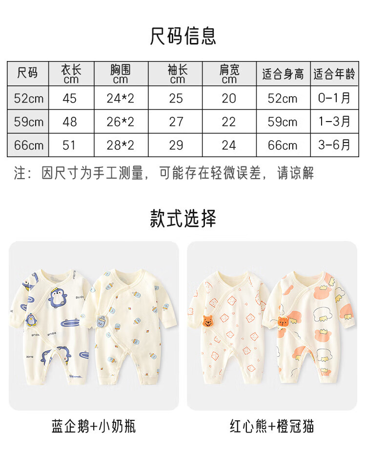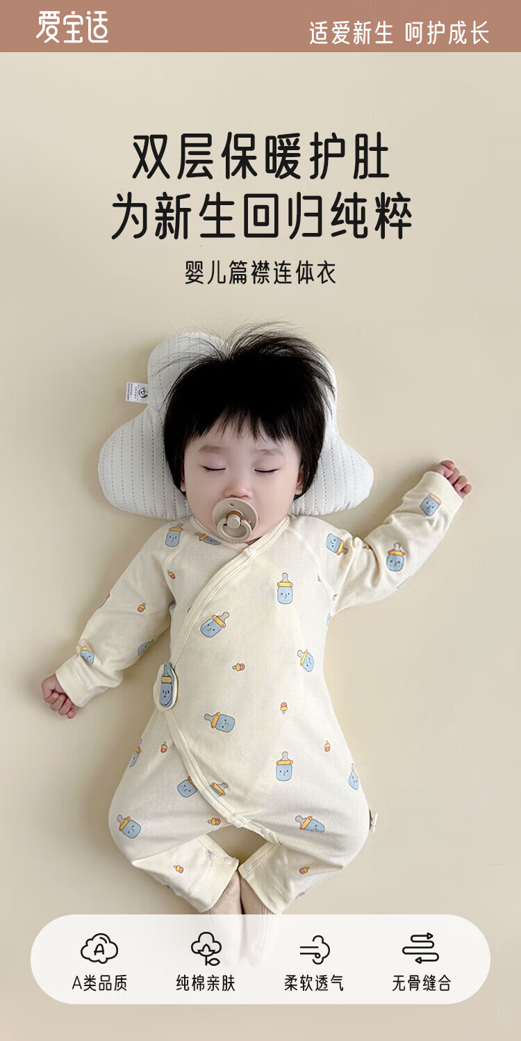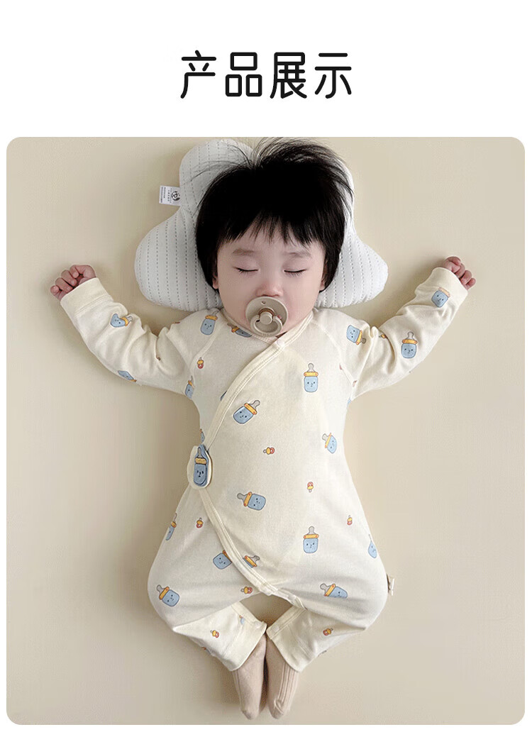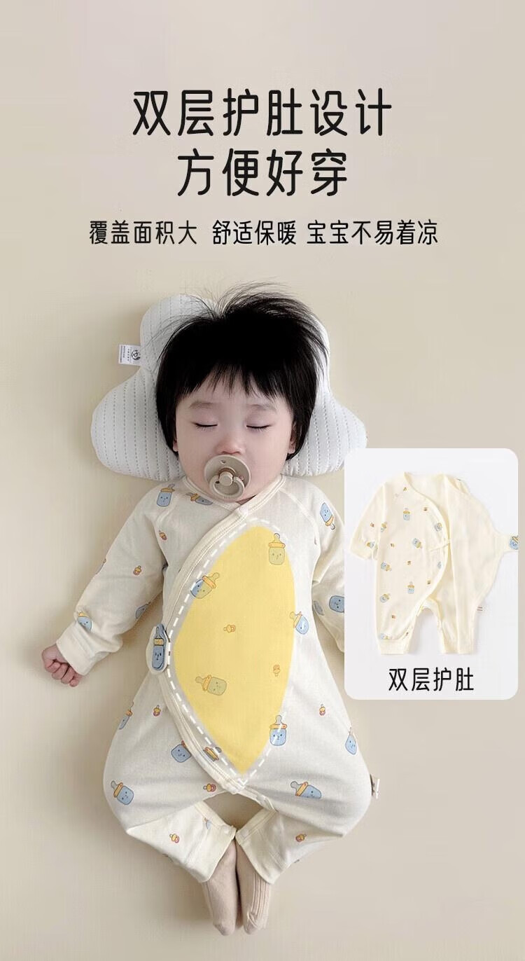 爱宝适婴儿连体衣纯棉春秋新生儿衣服宝宝哈衣和尚服奶瓶2件套T141 59码