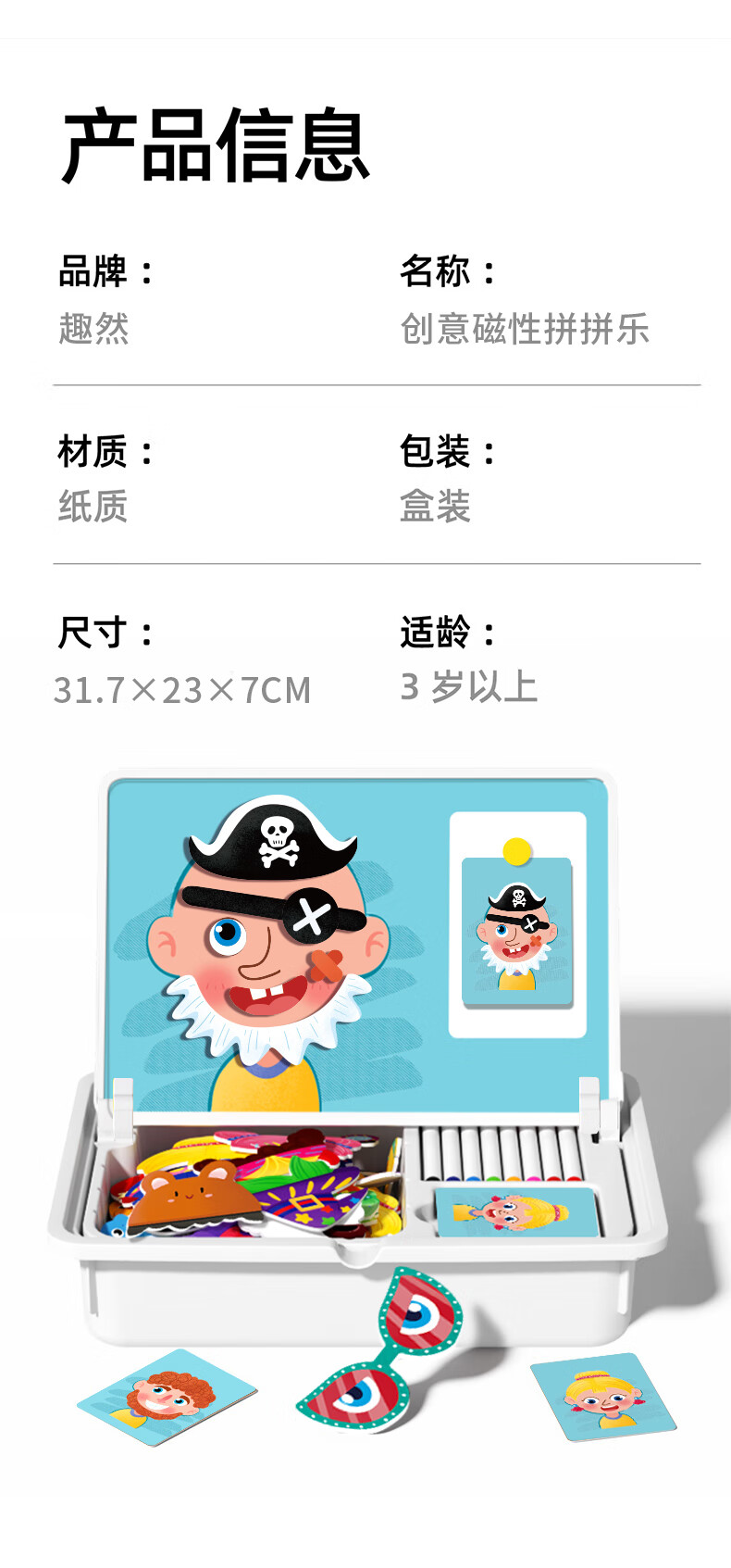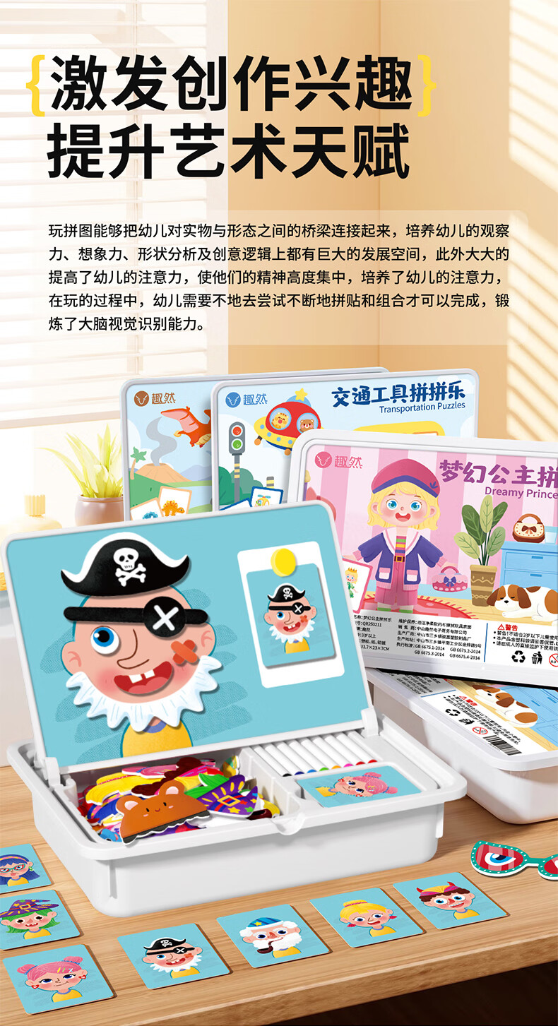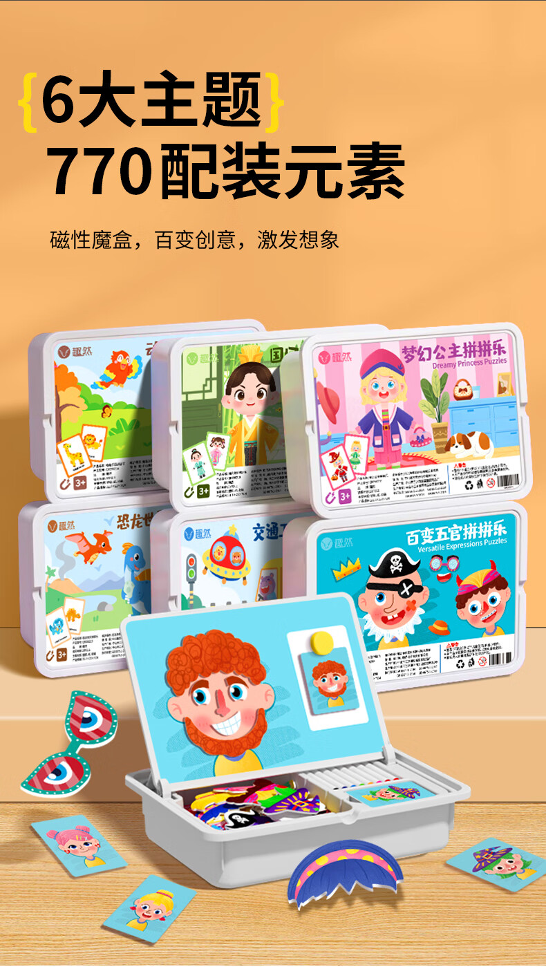 趣然磁力拼图儿童益智类磁性拼拼乐玩具3-6岁2男孩4女孩宝宝幼儿早教