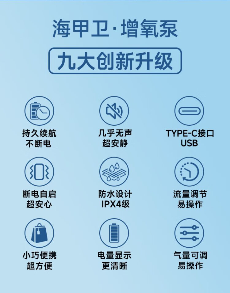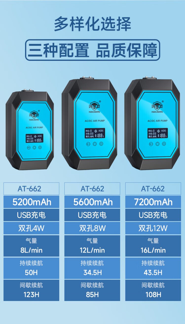 海甲衛(HAKAWIN)鱼缸增氧泵充电式 家用鱼缸氧气泵大气量 户外钓鱼氧泵 AT662