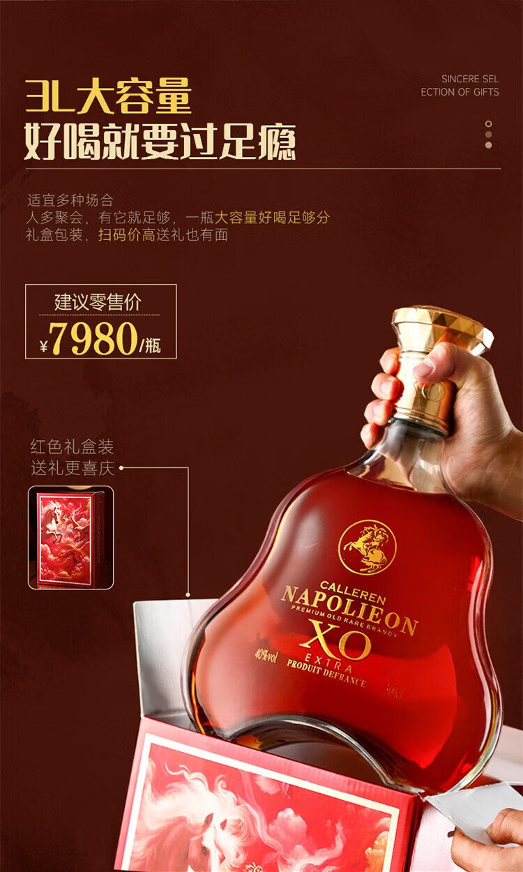 CALLEREN French XO brandy 40 degrees 3000ml single bottle spirits original wine imported foreign wine gifts
