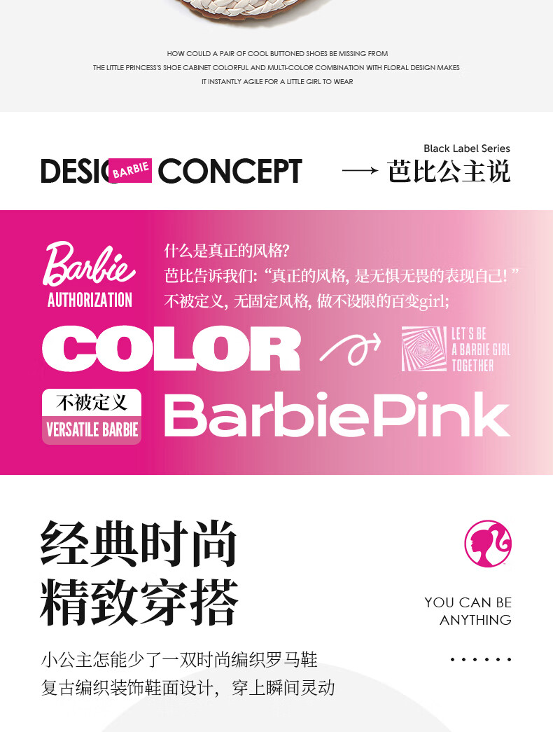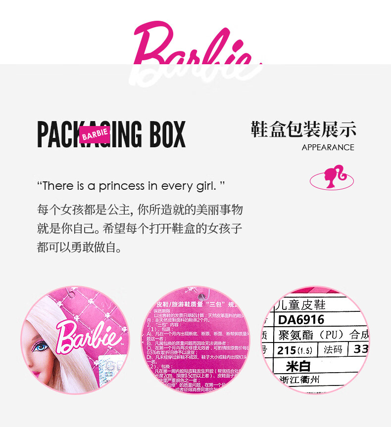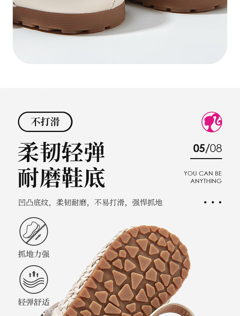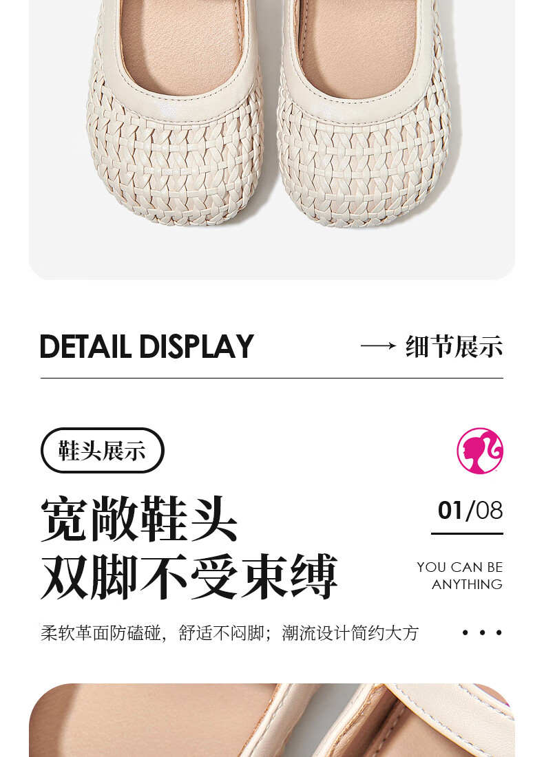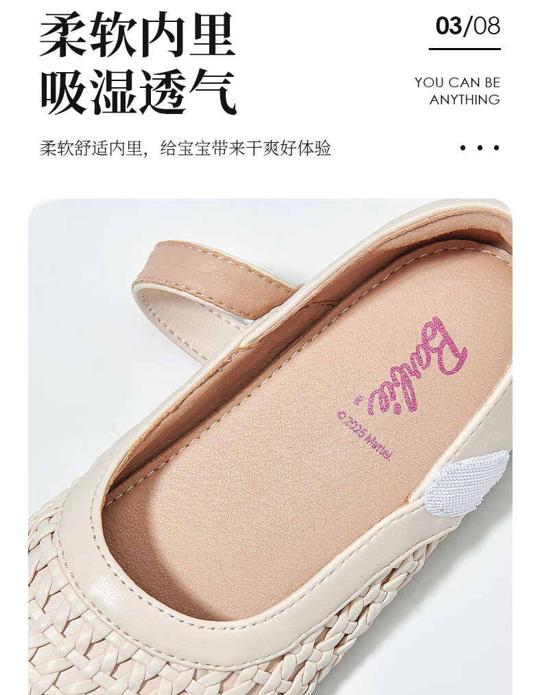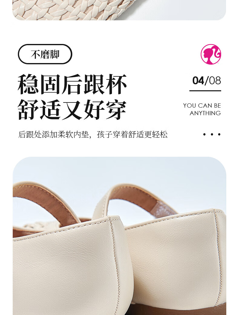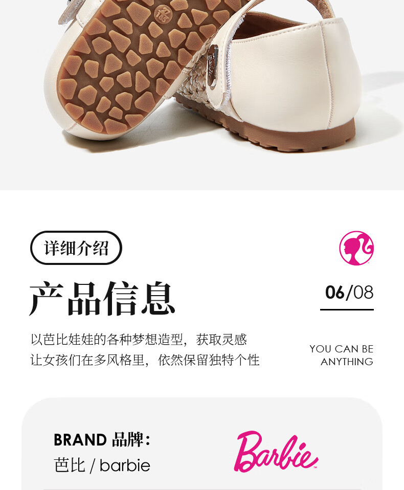 芭比儿童鞋子女童春秋编织皮鞋小女孩时尚包头公主鞋DA6916 米白 30