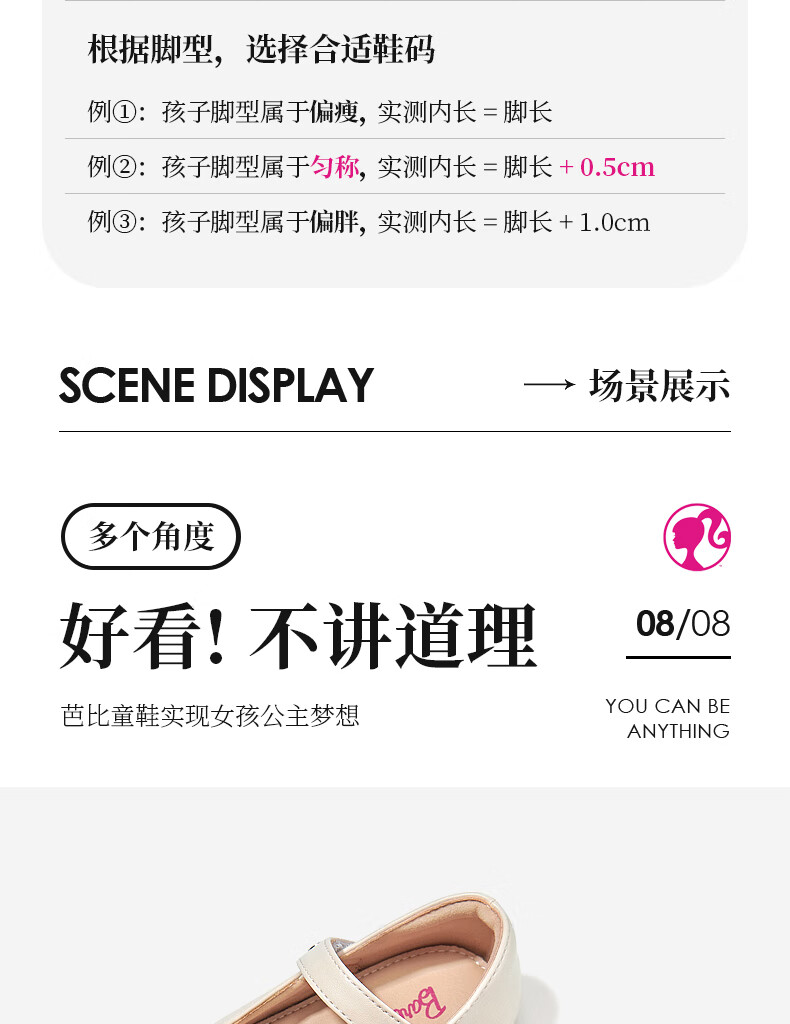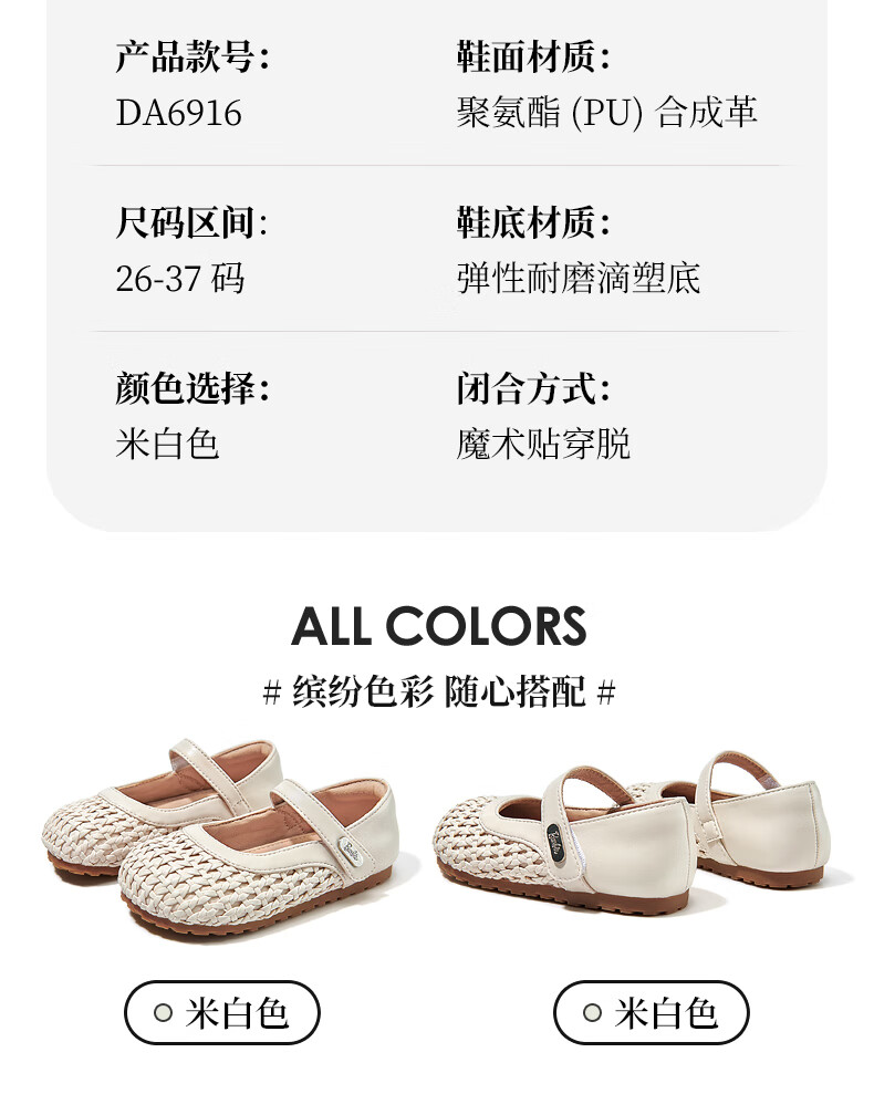 芭比儿童鞋子女童春秋编织皮鞋小女孩时尚包头公主鞋DA6916 米白  30