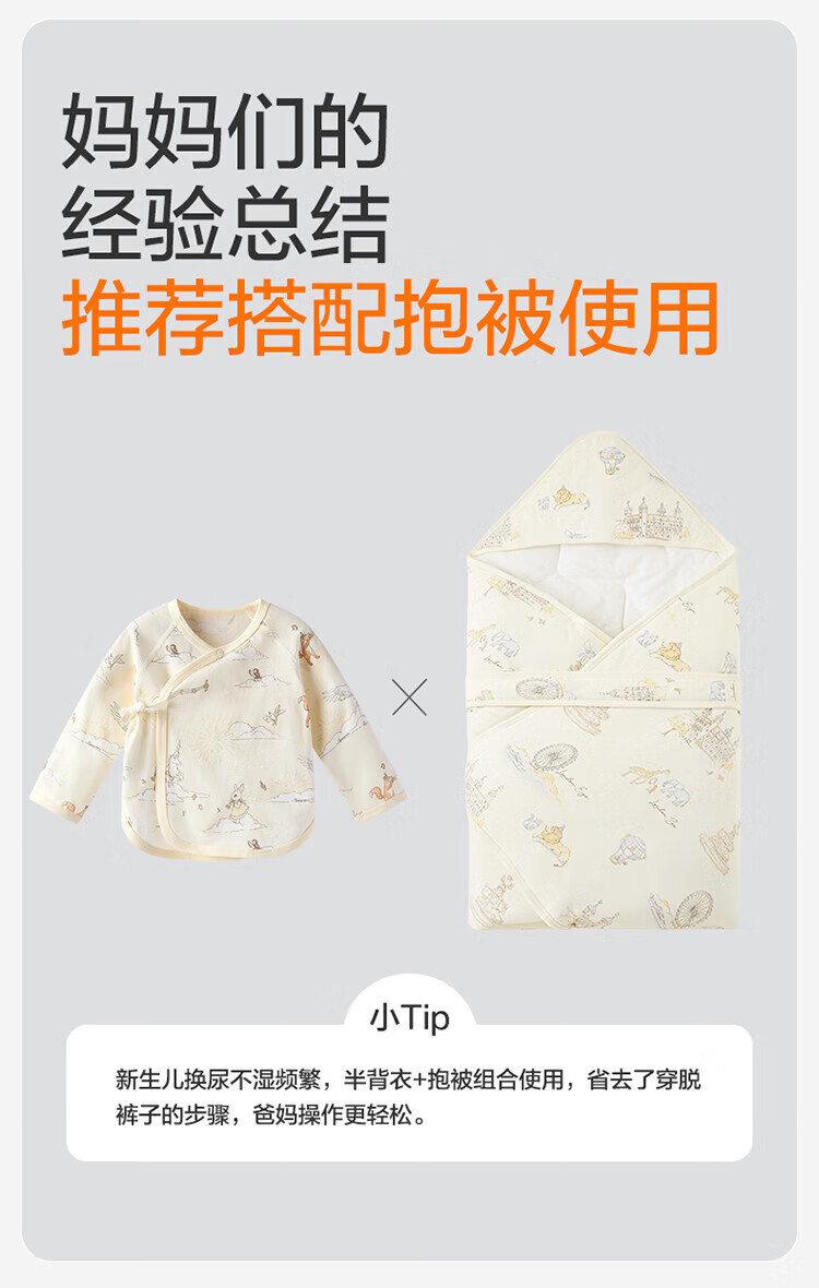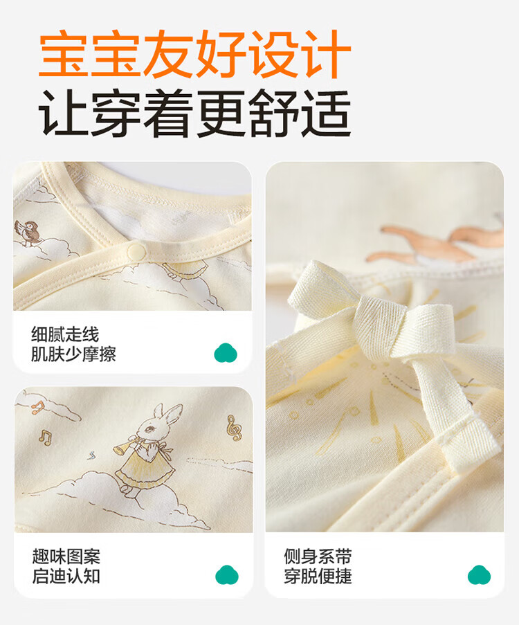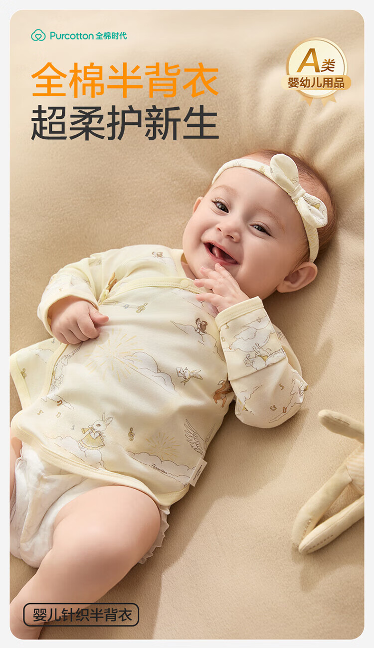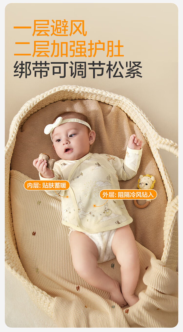 Cotton era baby knitted half-back top, boneless pure cotton full-month baby monk suit, belly protection top, Leyou Dreamland, size 52
