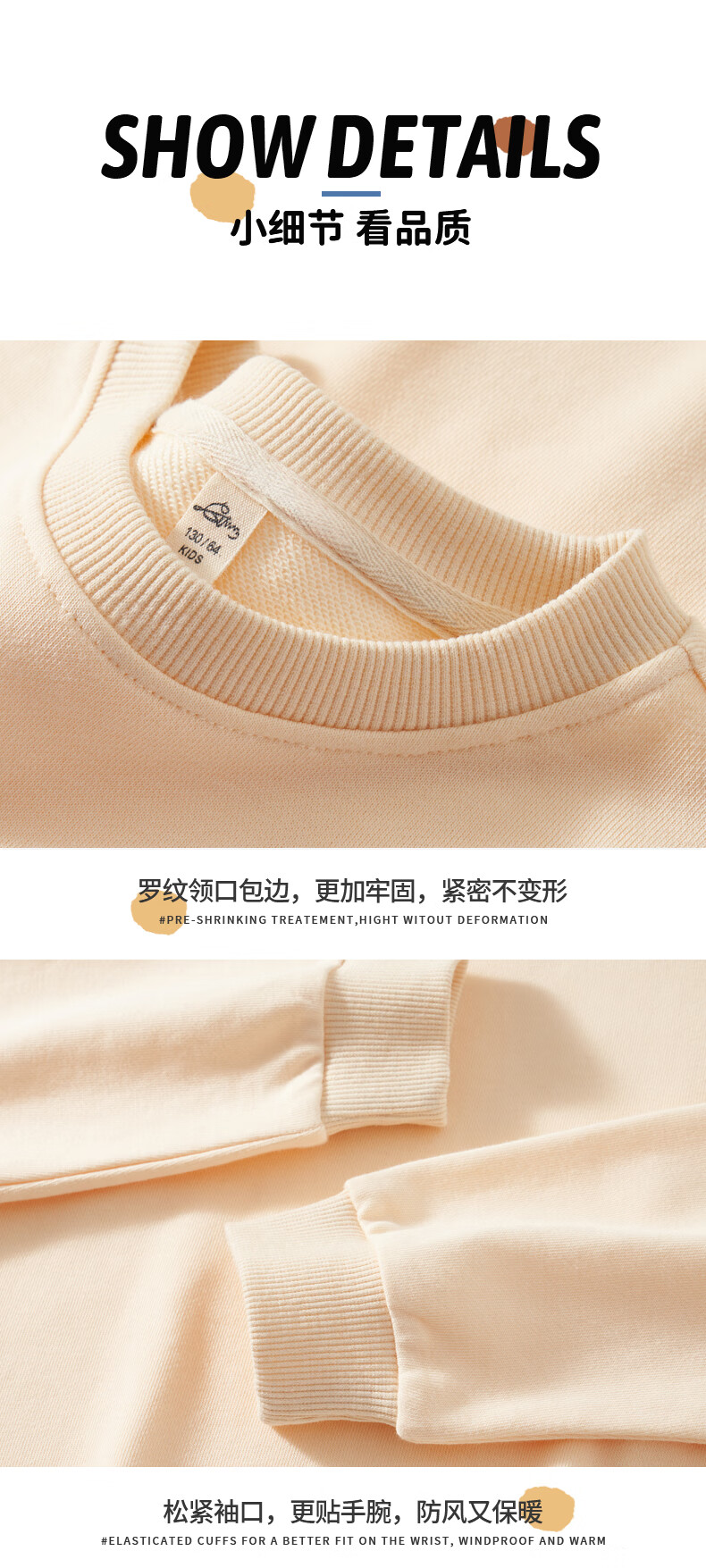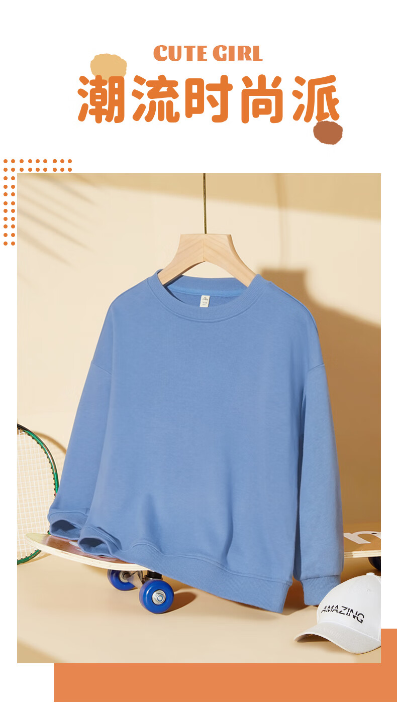 唐狮(TonLion)女童卫衣秋季新款可爱印花长袖中大童单穿打底上衣 奶油杏 150