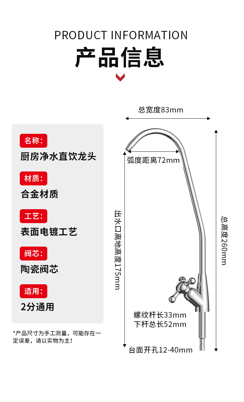 Jingwanhui universal water purifier accessories household direct drinking machine water purifier faucet kitchen sink vegetable basin single faucet (supplied with connector) W963