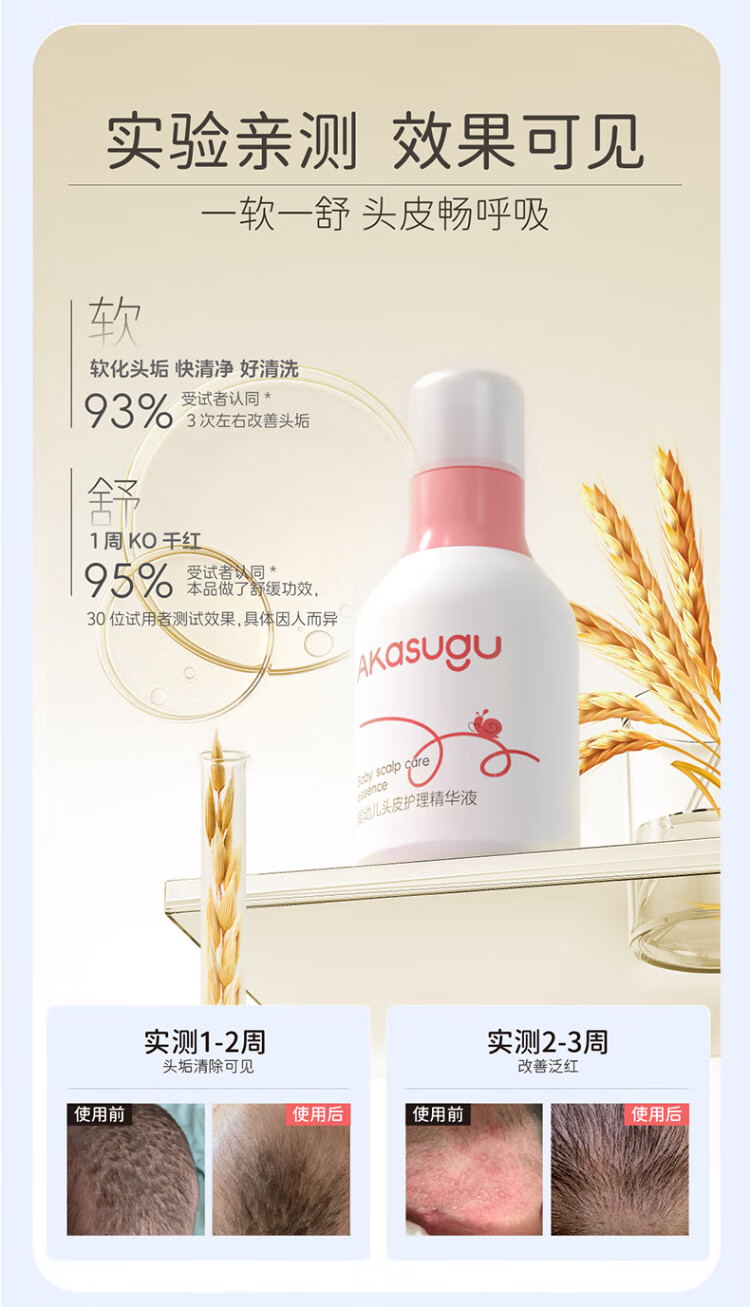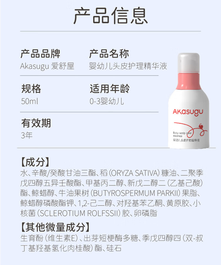 Akasugu爱舒屋婴幼儿去头垢精华液50ml宝宝护发软化头垢奶痂温和头皮护理