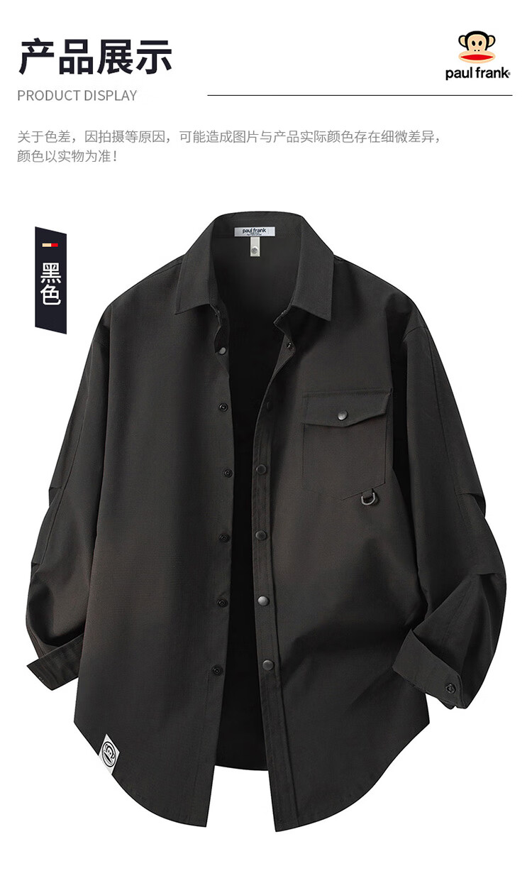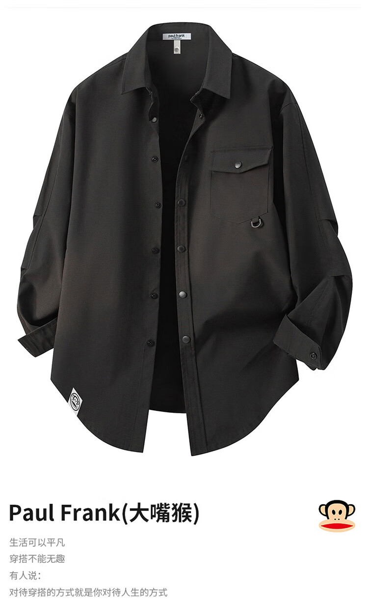 Paul Frank, рубашка с длинными рукавами, мужская весенне-осенняя свободная рабочая рубашка, мужская повседневная модная брендовая куртка, мужская черная XL