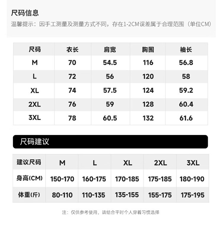 China (cm) 165 / 88-90 170 / 96-98 175 / 108-110 180 / 118-122 185 / 126-130