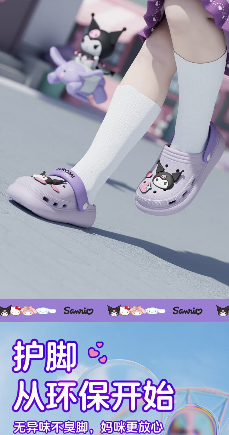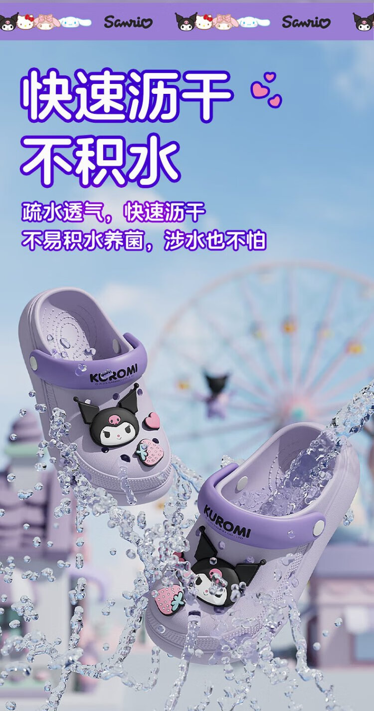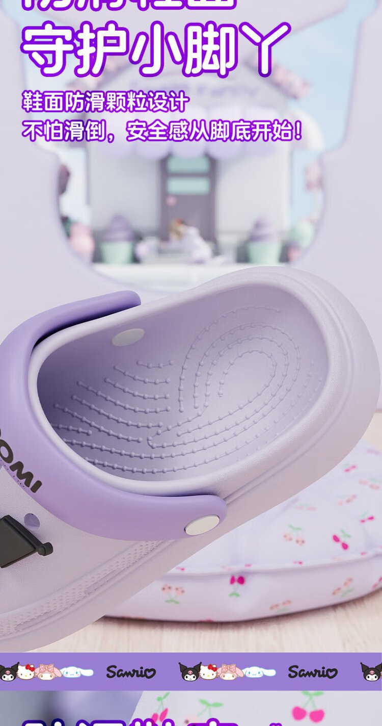 猪爸爸儿童拖鞋女童6-12岁夏季家居室内女宝宝洗澡防滑三丽鸥洞洞鞋紫21