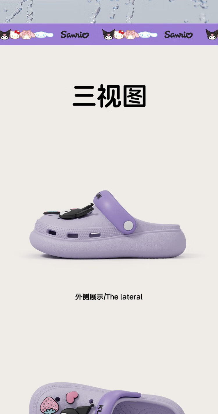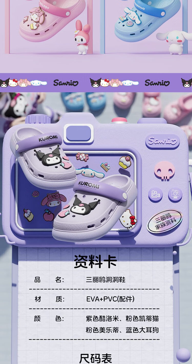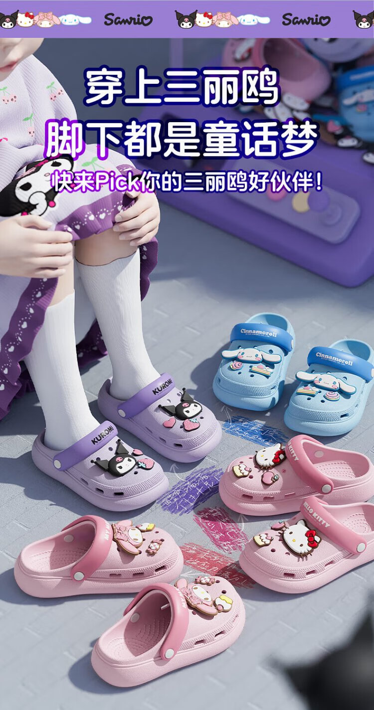 猪爸爸儿童拖鞋女童6-12岁夏季家居室内女宝宝洗澡防滑三丽鸥洞洞鞋紫21
