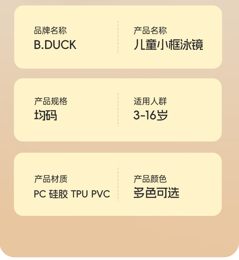 B.Duck小黄鸭儿童小框泳镜防水防雾男女童舒适高清潜水游泳护目镜眼镜