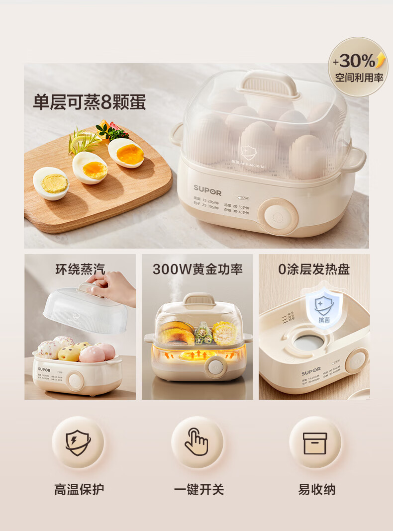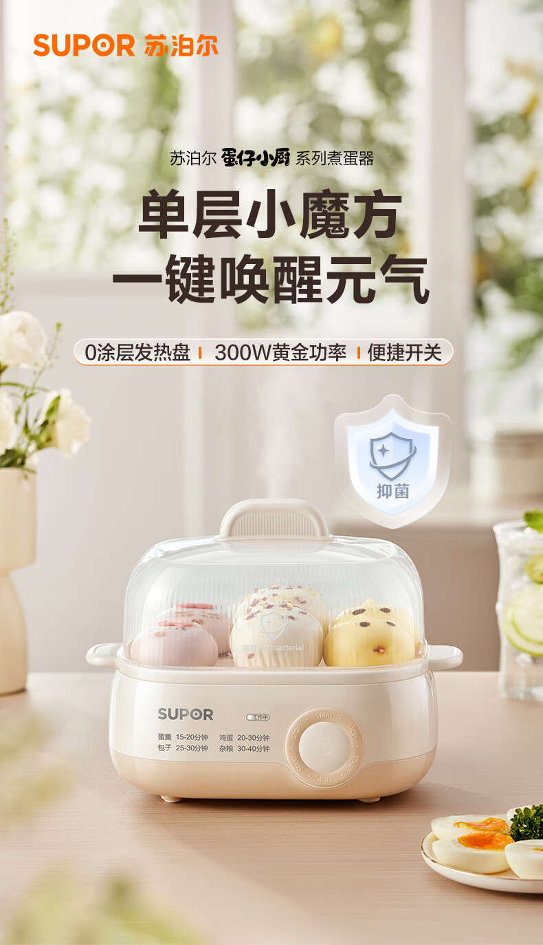 苏泊尔(SUPOR)煮蛋器 蒸蛋器 小型多功能迷你电蒸锅 煮鸡蛋神器 家用一人鸡蛋羹 Z18FK959