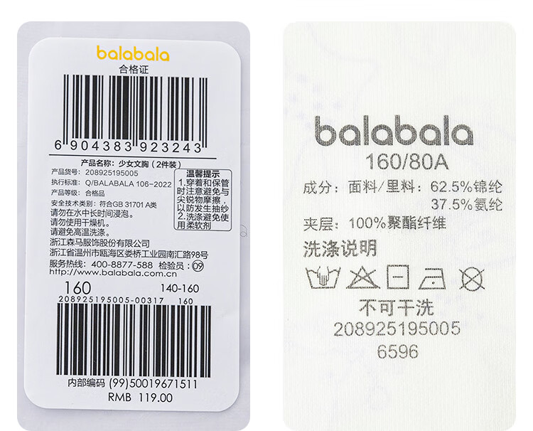 Balabala girls underwear development period children's small vest bra anti-bump anti-exposure two-piece 208925195005