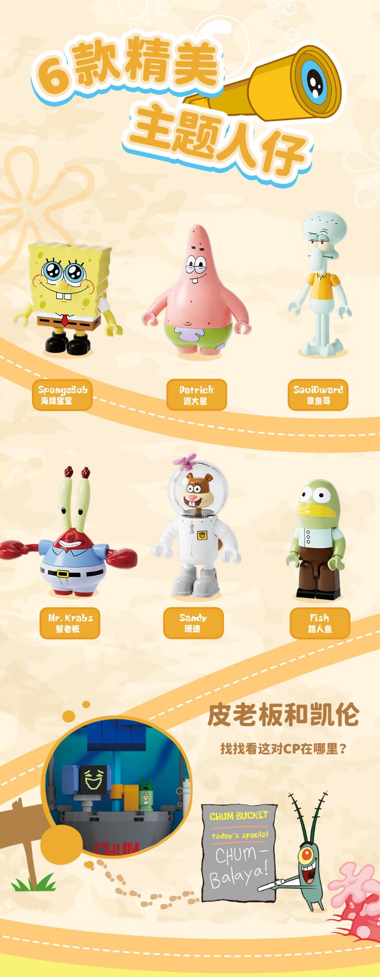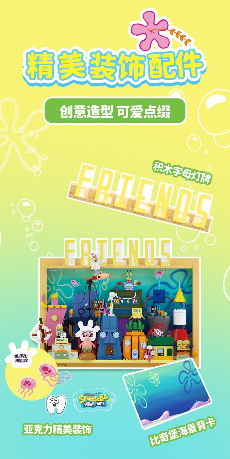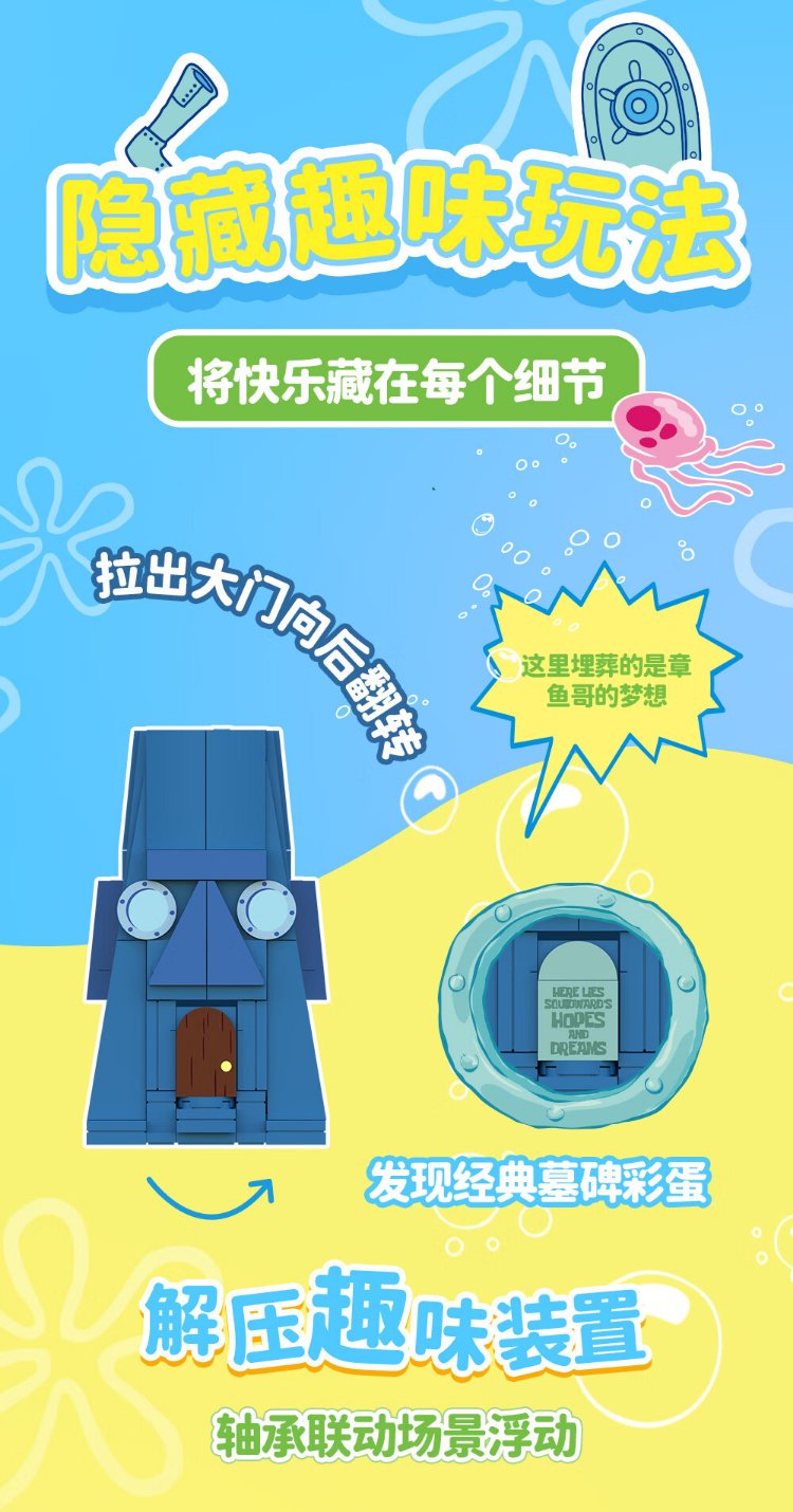 AREA-X砖区海绵宝宝正版授权潮玩积木玩具兼容乐高生日礼物 比奇堡乐园
