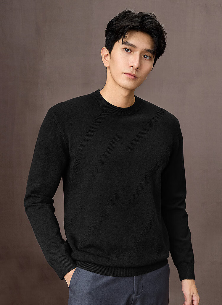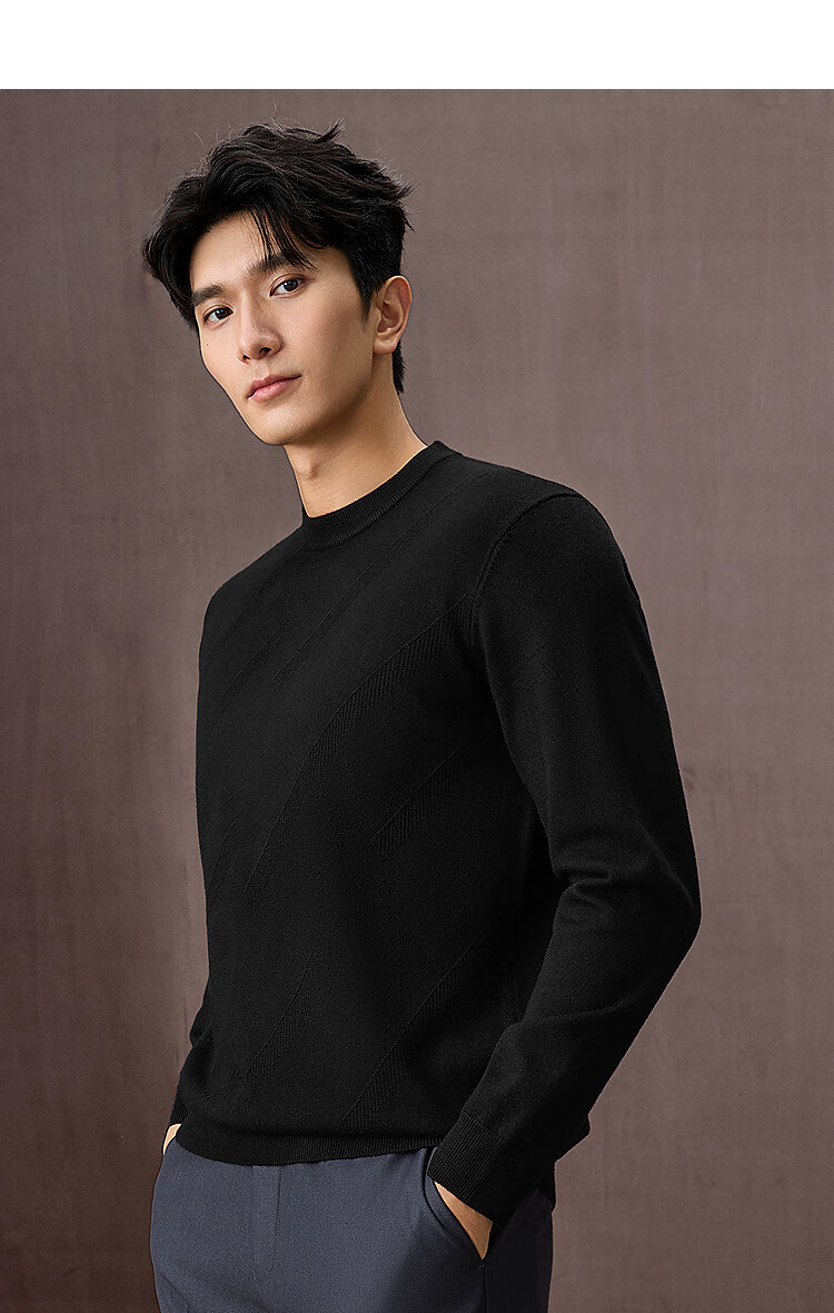 HLA海澜之家长袖针织衫男25轻商务时尚系列圆领毛衣男秋季