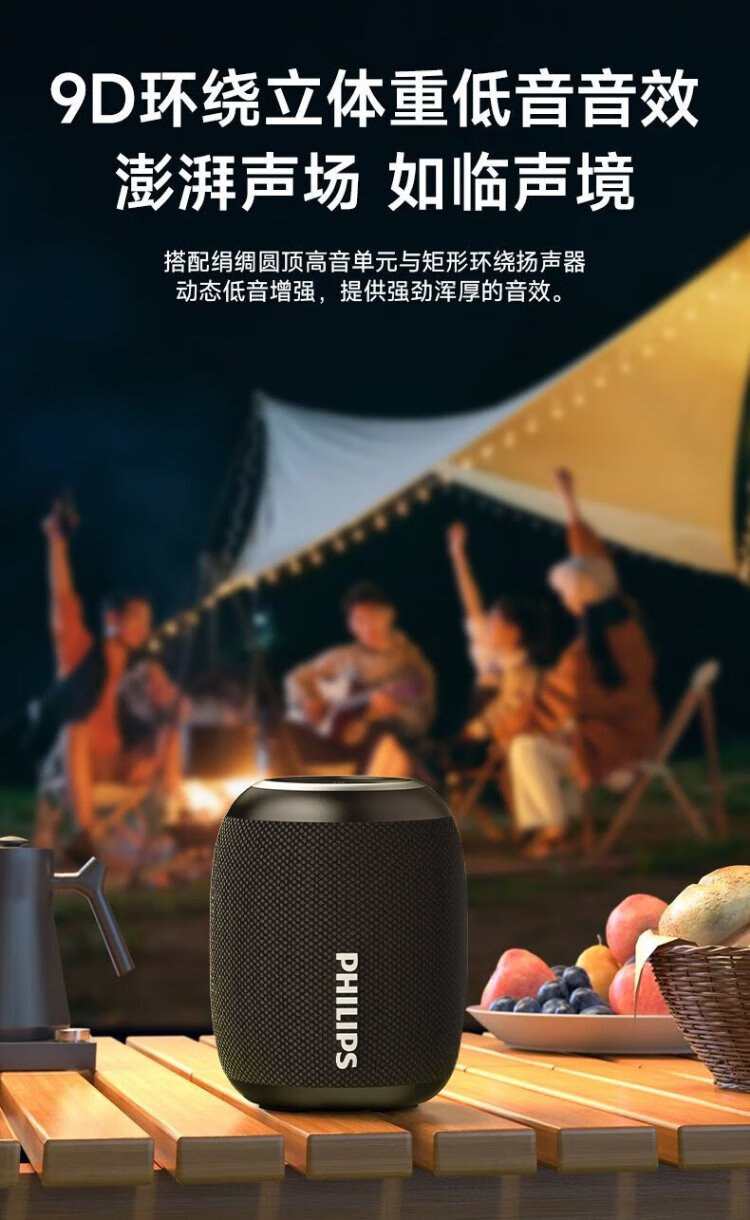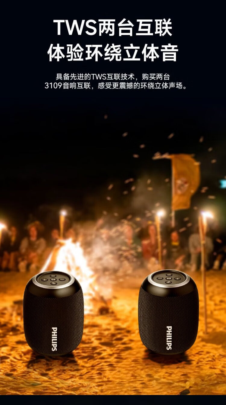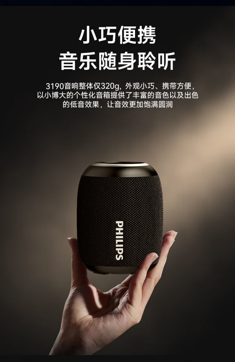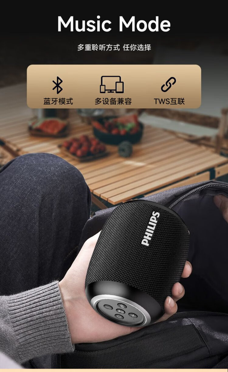 Philips (PHILIPS) TAS3109 Bluetooth speaker outdoor audio waterproof subwoofer mini high volume car riding bass black