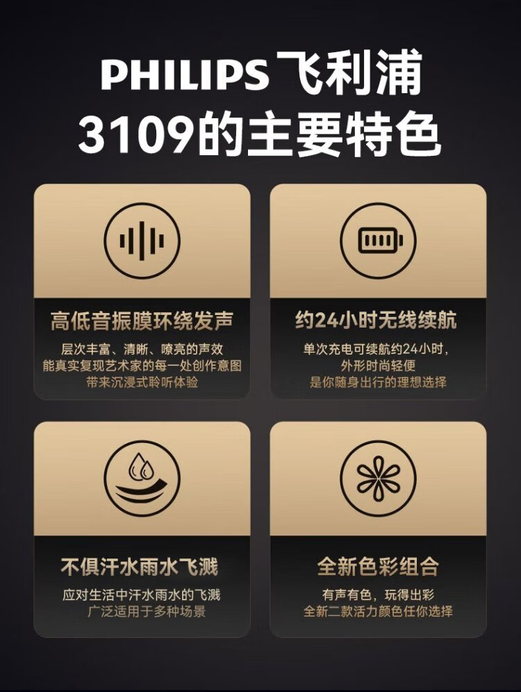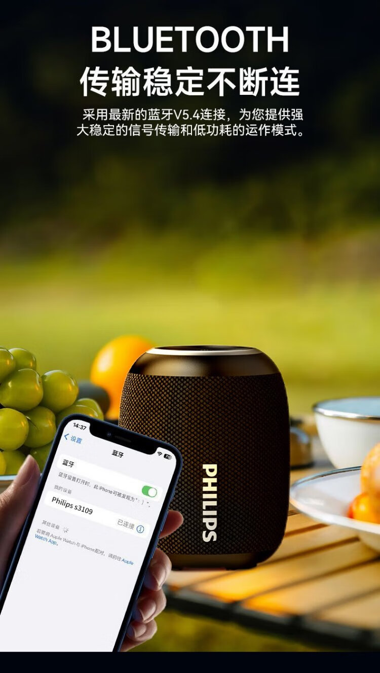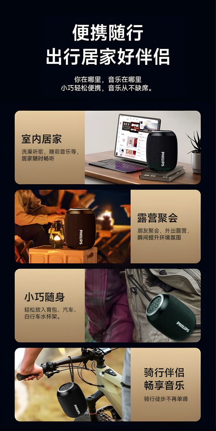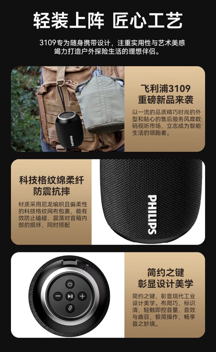 Philips (PHILIPS) TAS3109 Bluetooth speaker outdoor audio waterproof subwoofer mini high volume car riding bass black