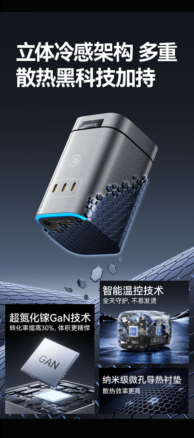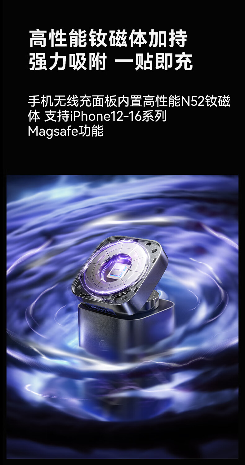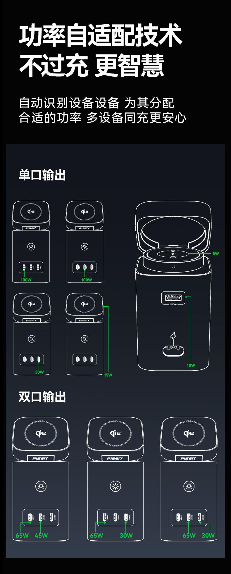 Pinsheng 120W gallium nitride desktop charger station qi2 wireless charging magnetic suction Type-C multi-port fast charging 100W socket suitable for Apple 17/16 Huawei mobile phone computer headphone watch