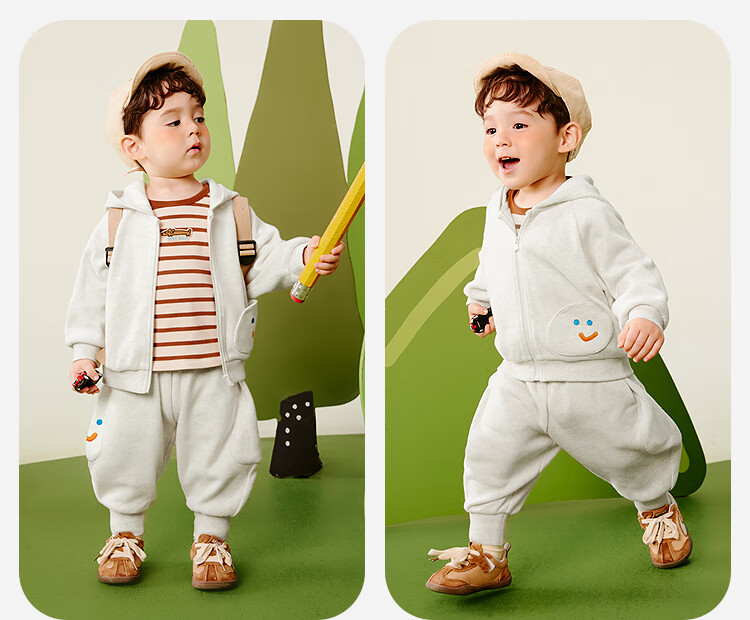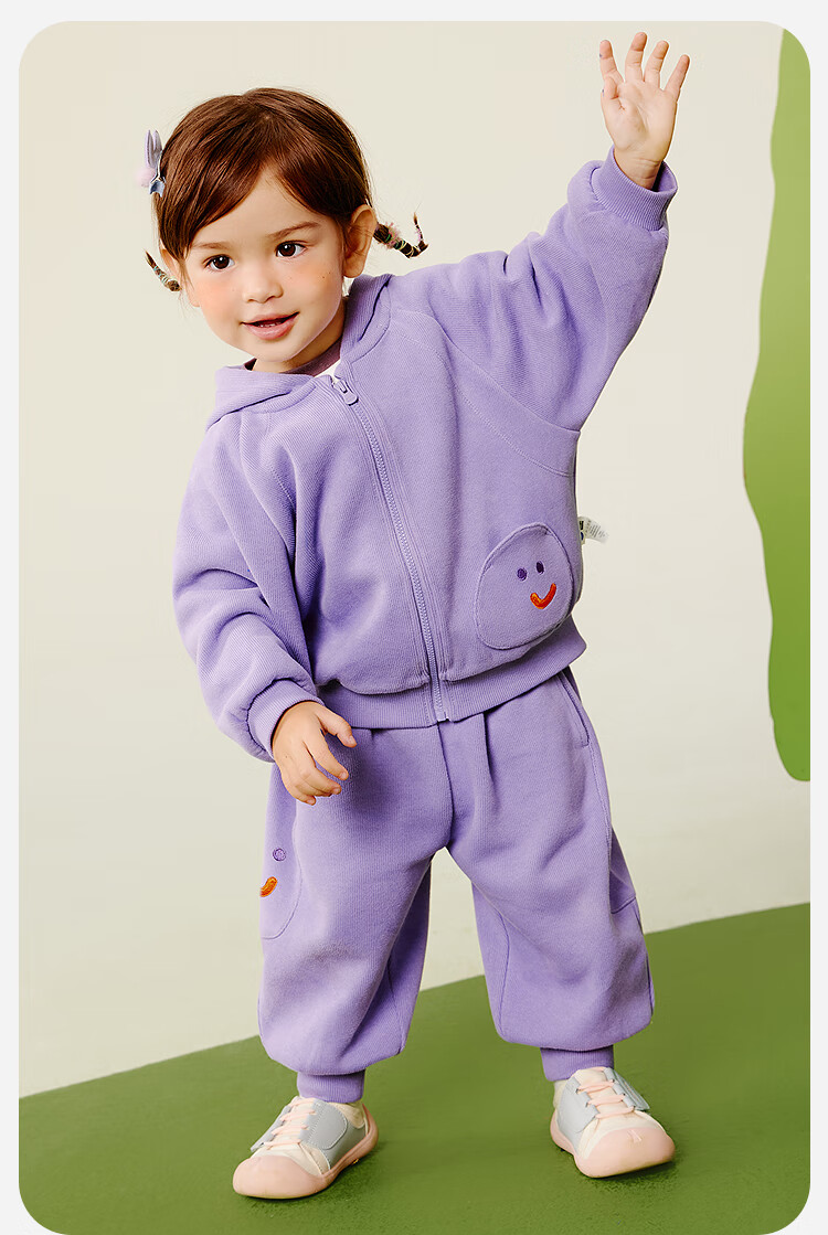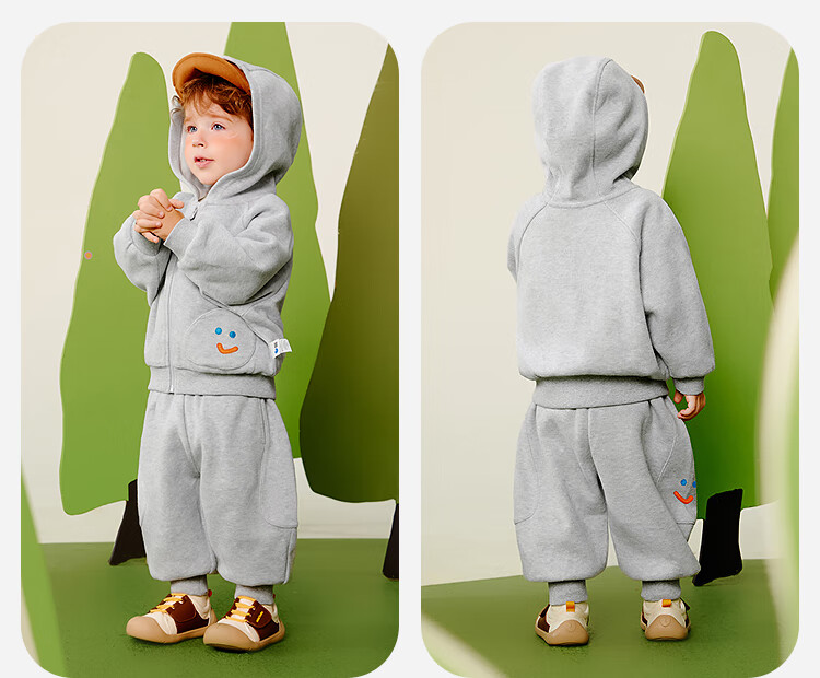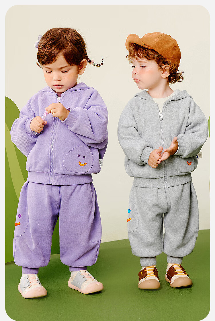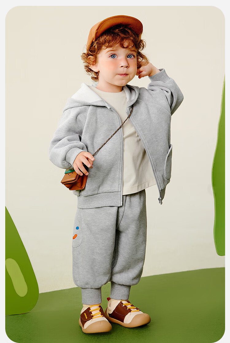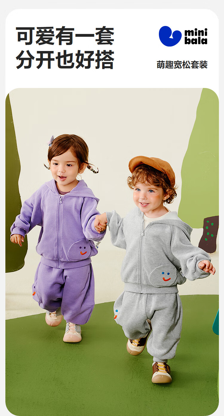 迷你巴拉男童女童套装宝宝连帽卫衣宽松外套长裤秋两件套2025新品