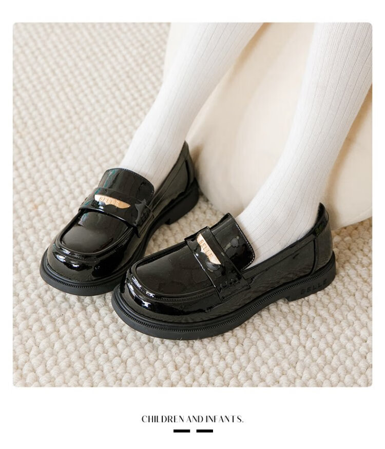 Zapatos Belle para niños, zapatos de cuero negro para niñas, mocasines de estilo nuevo británico de otoño 2025, zapatos de moda para niños, negro 36